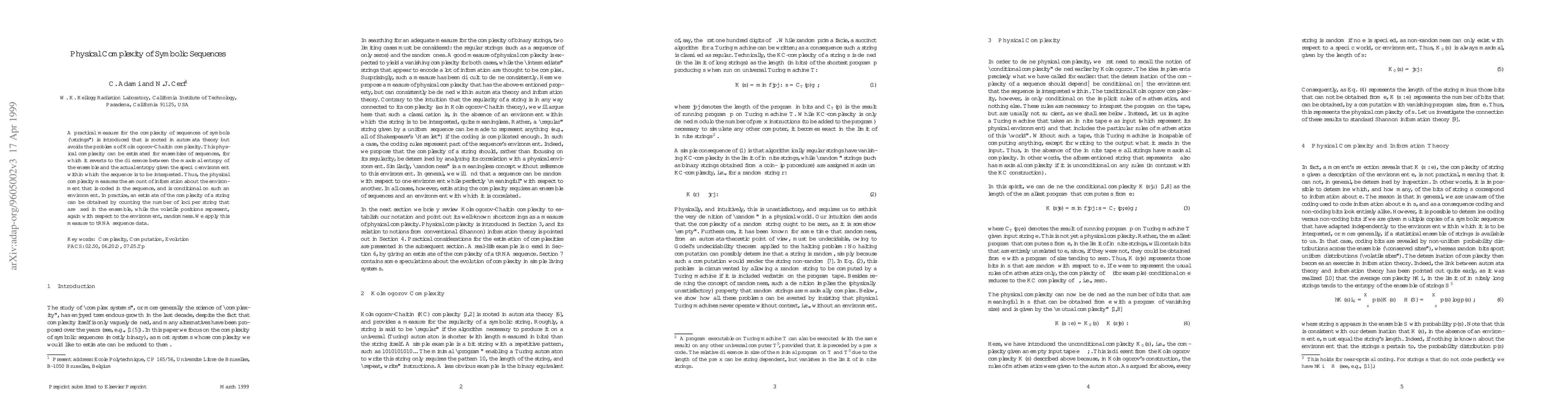 A practical measure for the complexity of sequences of symbols (``strings'') is introduced that is rooted in automata theory but avoids the problems of Kolmogorov-Chaitin complexity. This physical complexity can be estimated for ensembles of sequences, for which it reverts to the difference between the maximal entropy of the ensemble and the actual entropy given the specific environment within which the sequence is to be interpreted. Thus, the physical complexity measures the amount of information about the environment that is coded in the sequence, and is conditional on such an environment. In practice, an estimate of the complexity of a string can be obtained by counting the number of loci per string that are fixed in the ensemble, while the volatile positions represent, again with respect to the environment, randomness. We apply this measure to tRNA sequence data.