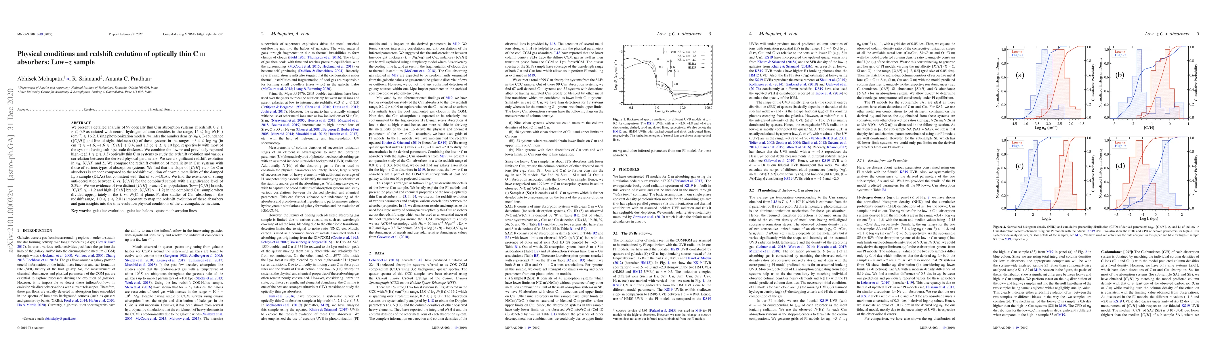 This study analyzes 99 optically thin C III absorption systems in galaxies at low redshifts (0.2-0.9) to understand their physical conditions and evolution over time.