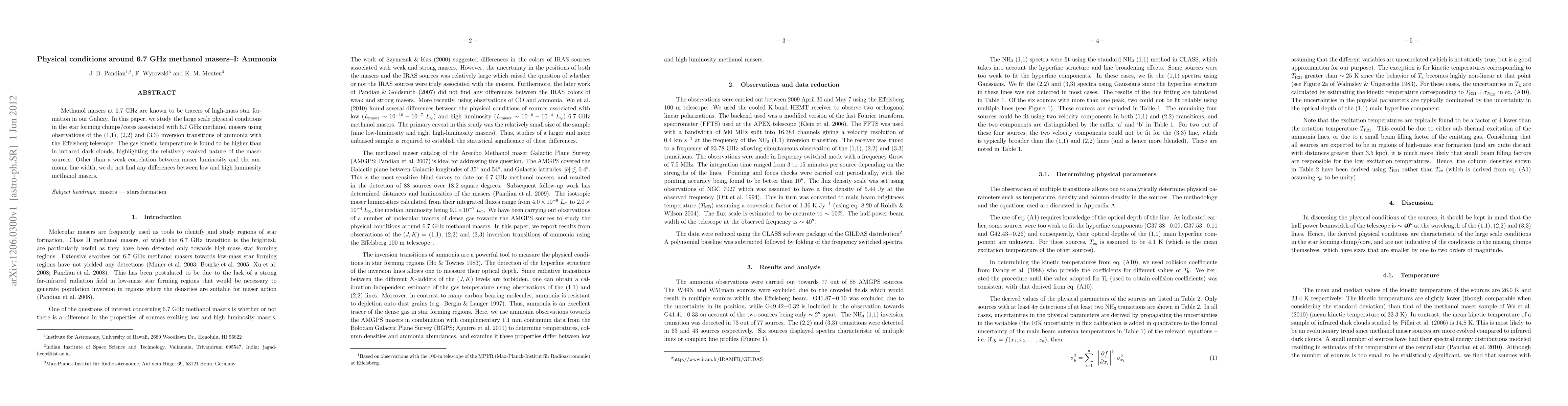 This study uses ammonia observations to analyze the physical conditions in star-forming regions associated with 6.7 GHz methanol masers, revealing higher gas kinetic temperatures compared to infrared dark clouds, indicating more evolved maser sources, with no significant differences found between low and high luminosity masers.