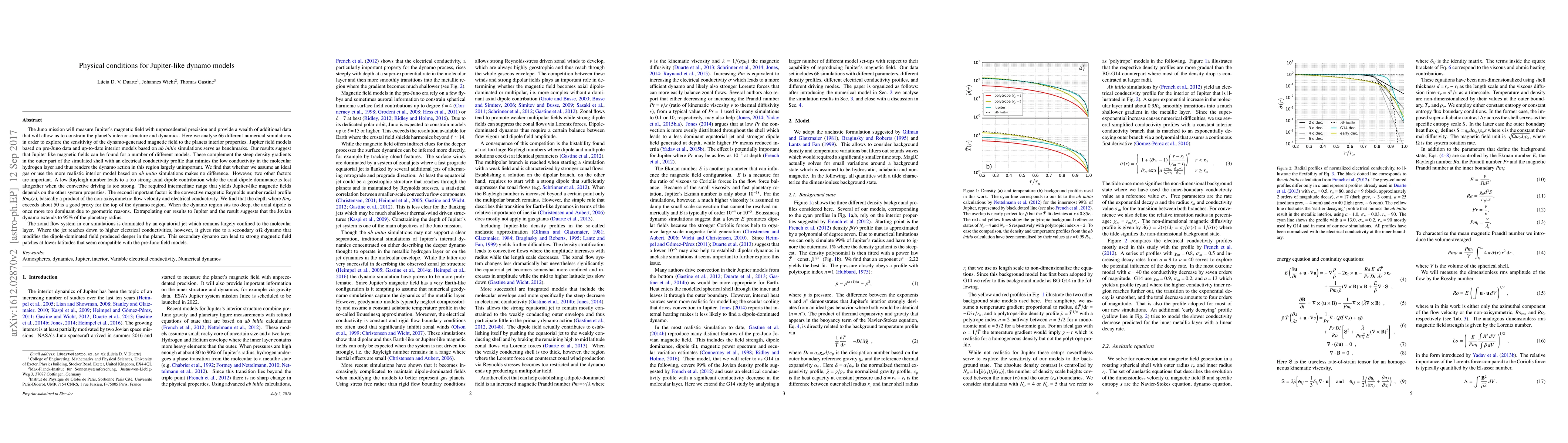 The Juno mission will measure Jupiter's magnetic field with unprecedented precision and provide a wealth of additional data that will allow to constrain the planet's interior structure and dynamics. Here we analyse 66 numerical simulations in order to explore the sensitivity of the dynamo-generated magnetic field to the planets interior properties. The degree l=4 field model VIP4 and up-to-date interior models based on ab initio simulations serve as benchmarks. Our results suggest that VIP4-like magnetic fields can be found for a number of different models. We find that whether we assume an ideal gas or use the more realistic interior model based on ab initio simulations makes no difference. However, two other factors are important. Low Rayleigh number leads to strong axial dipole contribution while the axial dipole dominance is lost when the convective driving is too strong. The required intermediate range that yields Jupiter-like magnetic fields depends on the other system properties. The second factor is the convective magnetic Reynolds number profile Rmc(r), a product of the non-axisymmetric flow velocity and electrical conductivity. We find that the depth where Rmc exceeds about 50 is a good proxy for the top of the dynamo region. When the dynamo region sits too deep, the axial dipole is once more too dominant due to geometric reasons. We extrapolated our results to Jupiter and the result suggests that the Jovian dynamo extends to 95% of the planetary radius. The zonal flows in our simulations are dominated by an equatorial jet largely confined to the molecular layer. Where the jet reaches down to higher electrical conductivities, it is gives rise to a secondary alpha-Omega dynamo that modifies the dipole-dominated field produced deeper in the planet. This secondary dynamo can lead to strong magnetic field patches at low latitudes that seem compatible with the VIP4 model.