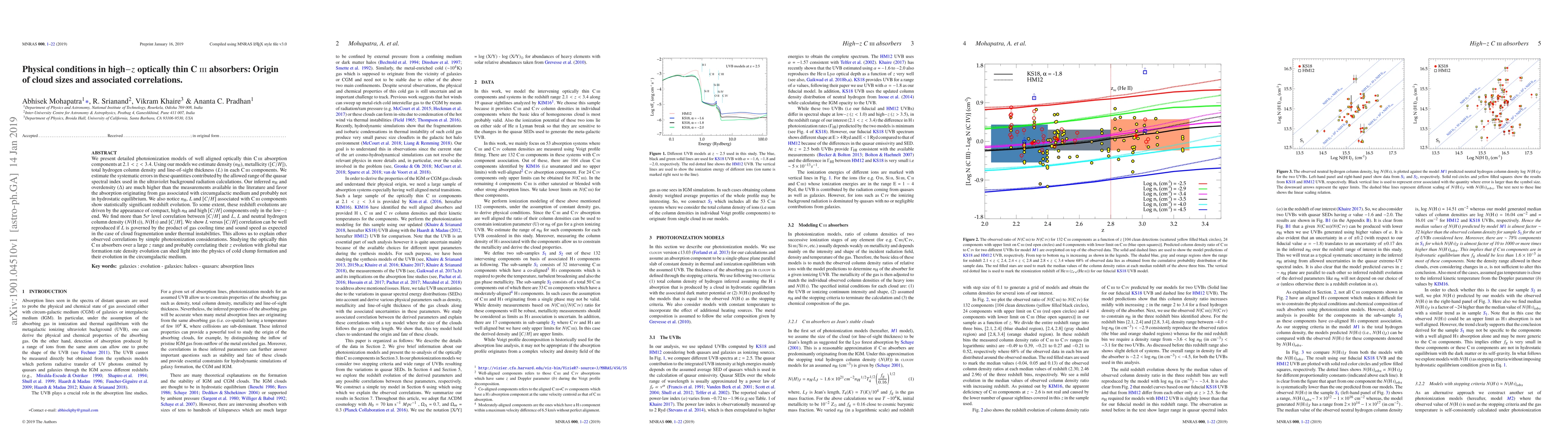 Researchers investigated high-z optically thin C III absorbers, finding they likely originate from gas in circumgalactic medium with much higher densities than previously thought, and showed statistically significant correlations between abundance ratios and cloud thickness.