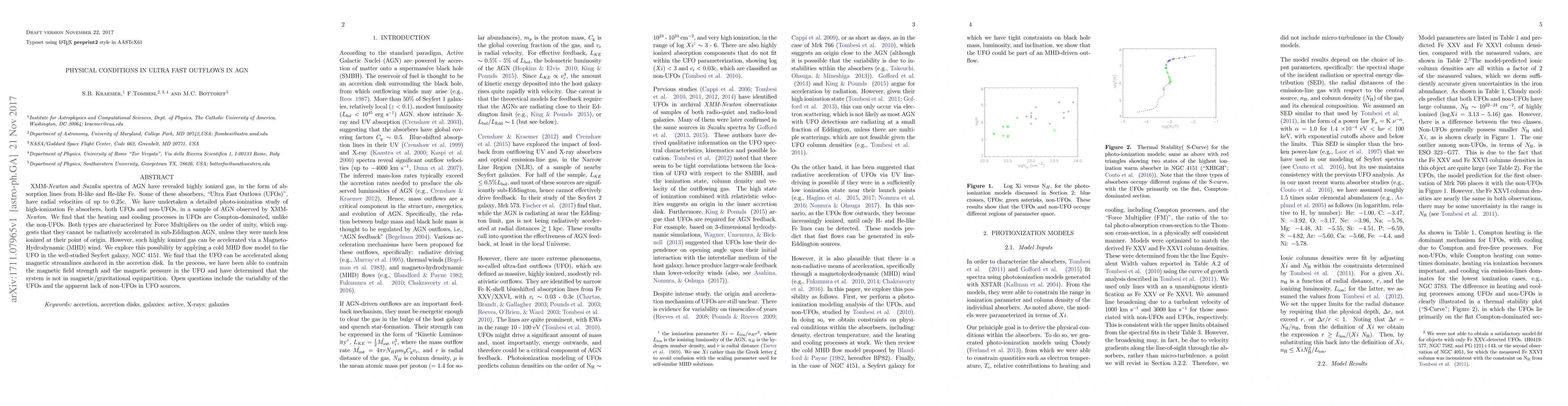Researchers studied Ultra Fast Outflows in Active Galactic Nuclei (AGN) and found that Compton-dominated heating and cooling processes drive the outflows, suggesting MHD acceleration via magnetic winds.
