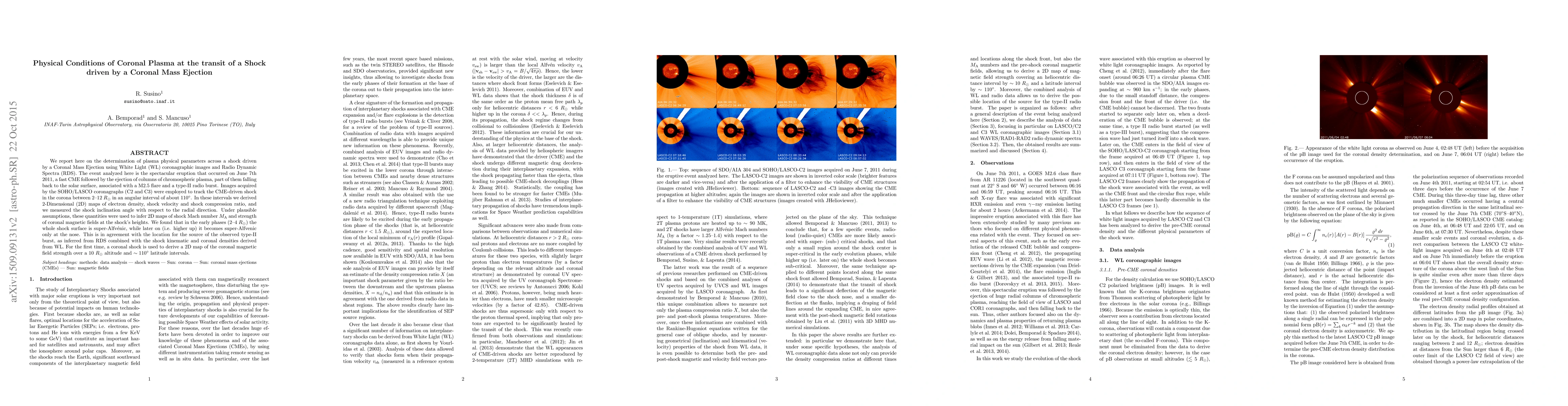 This study analyzes the physical conditions of coronal plasma across a shock driven by a Coronal Mass Ejection (CME) using SOHO/LASCO images and Radio Dynamic Spectra. It finds that the shock is super-Alfvenic early on but transitions to being super-Alfvenic only at the nose later, correlating with the source of the observed type-II radio burst.