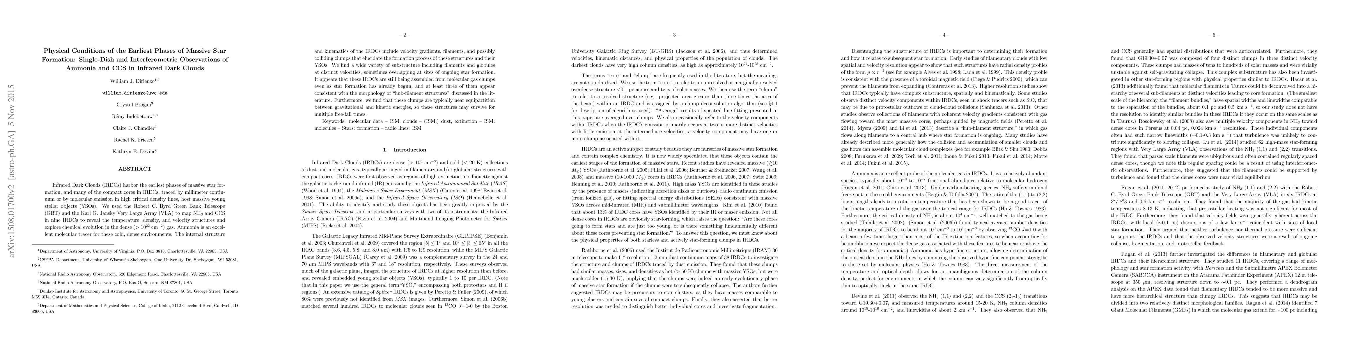 This study uses the GBT and VLA to map ammonia and CCS in Infrared Dark Clouds (IRDCs), revealing the physical conditions, including temperature, density, and velocity structures, of the earliest phases of massive star formation. The findings suggest that IRDCs are still assembling from molecular gas clumps, with structures often near equipartition between gravitational and kinetic energies, indicating potential longevity and ongoing star formation.