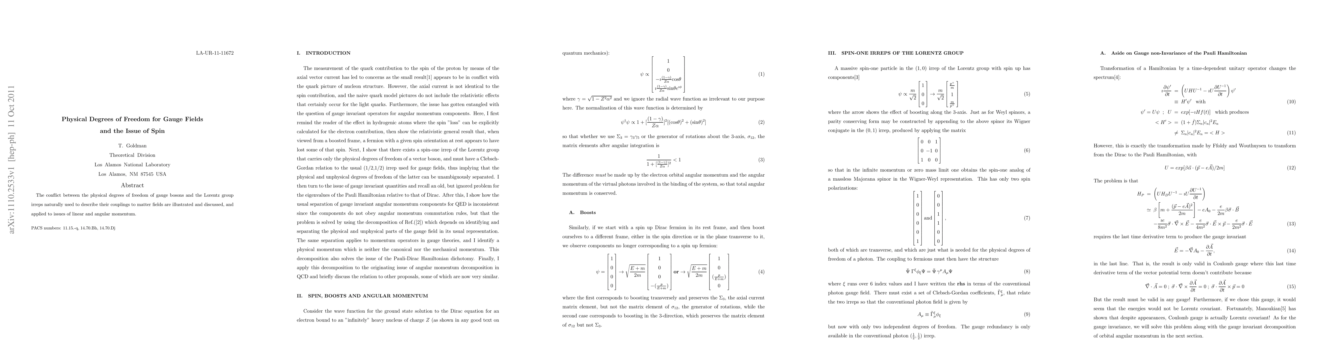Summary: This paper explores the discrepancy between the physical degrees of freedom for gauge bosons and the Lorentz group representations used to describe their interactions, focusing on the implications for linear and angular momentum.