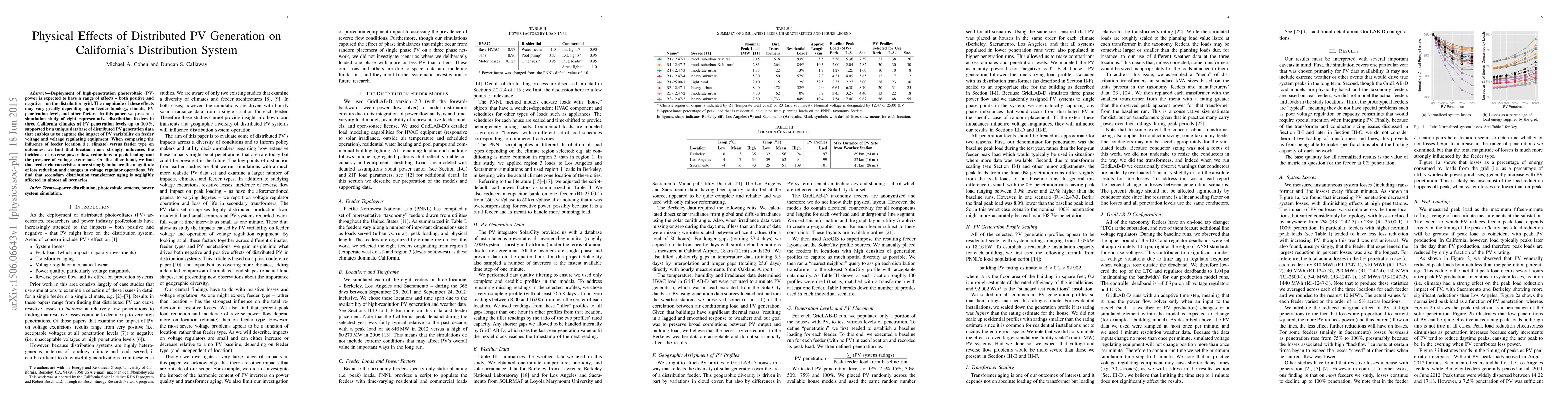 This paper explores the physical impacts of high-penetration photovoltaic (PV) generation on California's distribution system, finding that climate strongly influences reverse power flow and voltage issues, while feeder characteristics affect loss reduction and voltage regulator operations. Secondary distribution transformer aging is minimally impacted.
