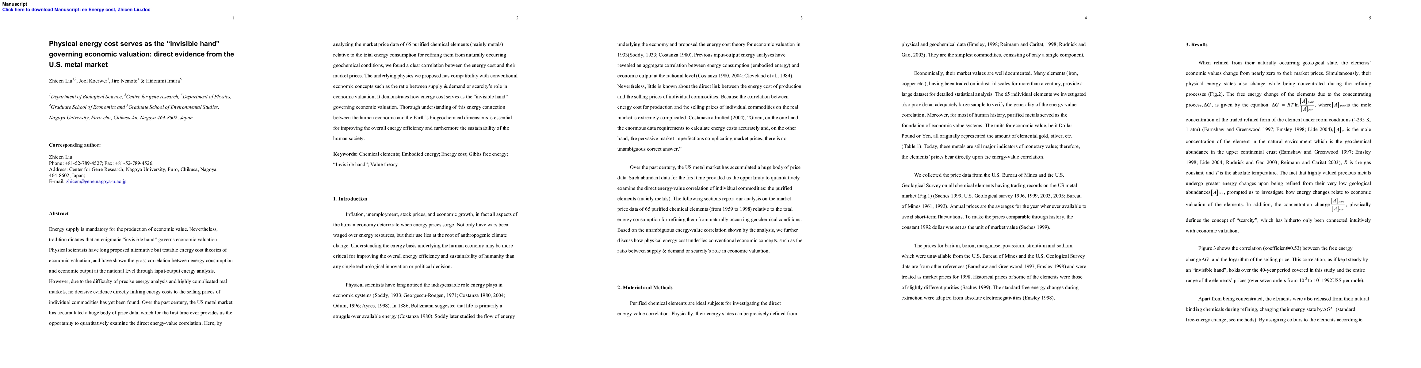 This paper demonstrates a direct correlation between the energy cost of refining metals and their market prices, providing evidence that physical energy cost serves as the "invisible hand" governing economic valuation. The analysis of 65 purified chemical elements' prices against their refining energy costs reveals a clear energy-value link, enhancing our understanding of the interplay between human economic and Earth's biogeochemical systems.