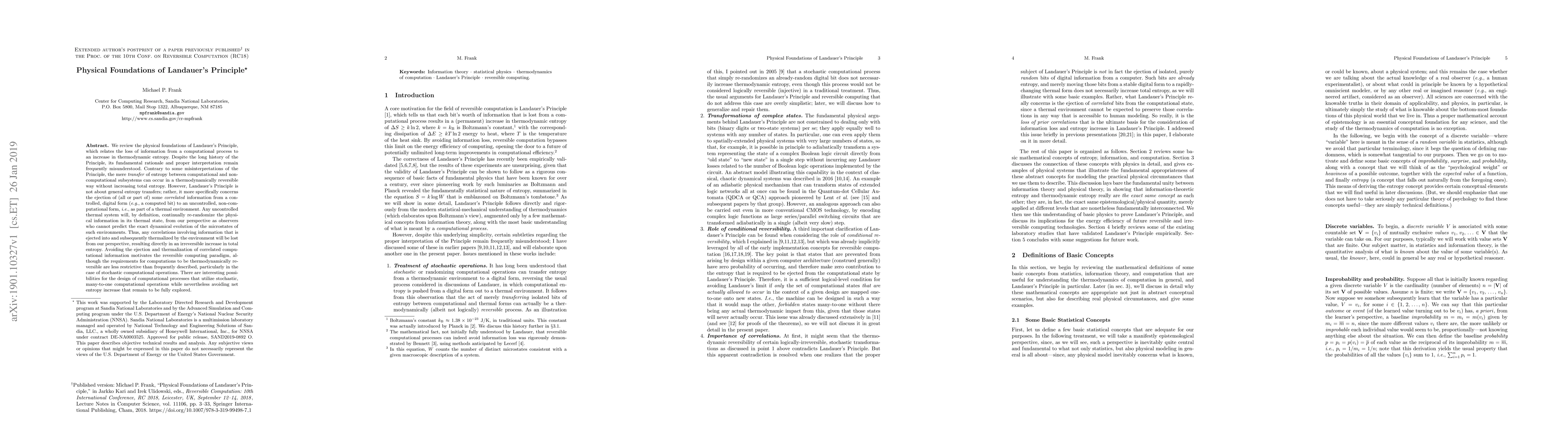 The paper reviews the physical foundations of Landauer's Principle, clarifying its fundamental rationale and interpretation, emphasizing the distinction between reversible and irreversible computational processes, and exploring the implications for reversible computing.