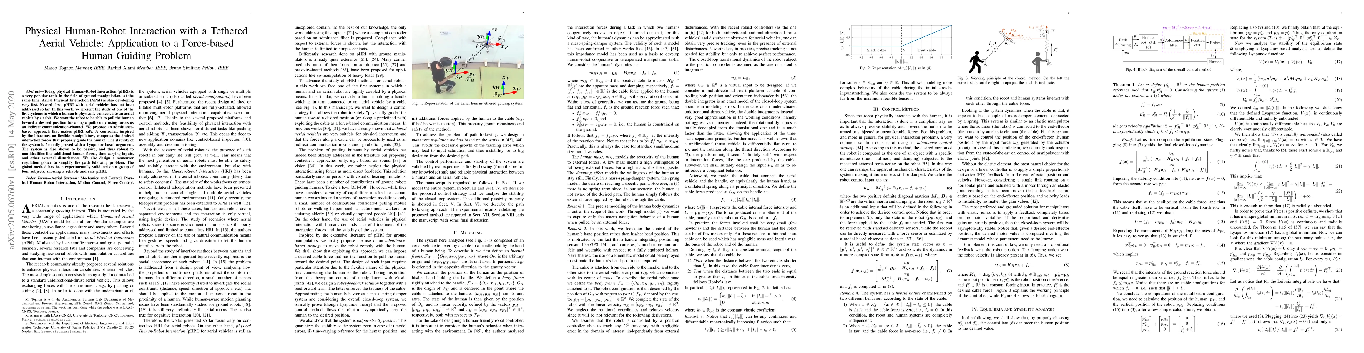 This paper explores physical human-robot interaction (pHRI) with a tethered aerial vehicle, proposing an admittance-based approach to safely guide humans using only force-based communication. The stability and robustness of the system are proven, and experimental validation demonstrates its reliability and safety.