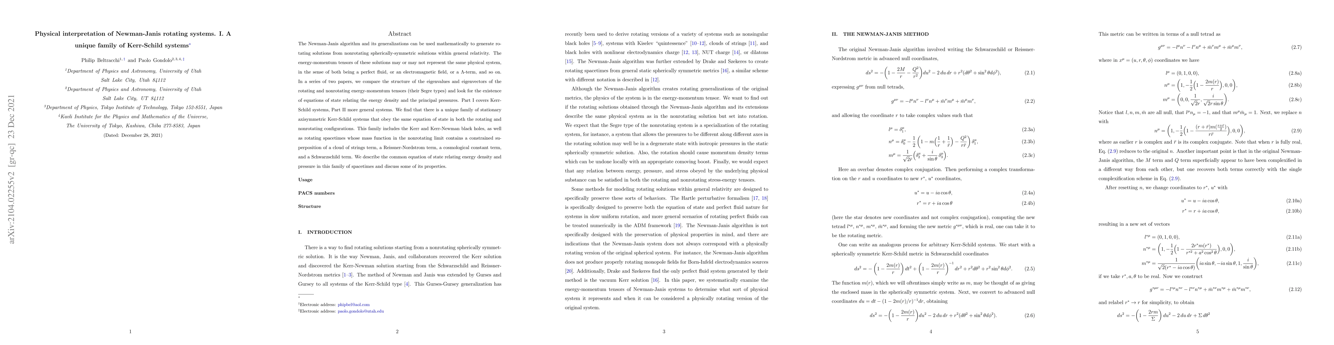 This paper explores the Newman-Janis algorithm's ability to generate rotating solutions from nonrotating ones in general relativity, identifying a unique family of Kerr-Schild systems that share the same equation of state in both configurations, including Kerr and Kerr-Newman black holes. The study discusses the common physical interpretation of these spacetimes.