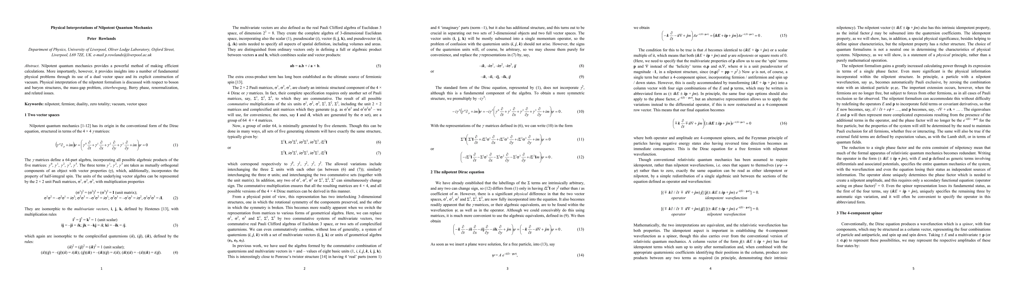 Nilpotent quantum mechanics provides a powerful method of making efficient calculations. More importantly, however, it provides insights into a number of fundamental physical problems through its use of a dual vector space and its explicit construction of vacuum. Physical interpretation of the nilpotent formalism is discussed with respect to boson and baryon structures, the mass-gap problem, zitterbewgung, Berry phase, renormalization, and related issues.