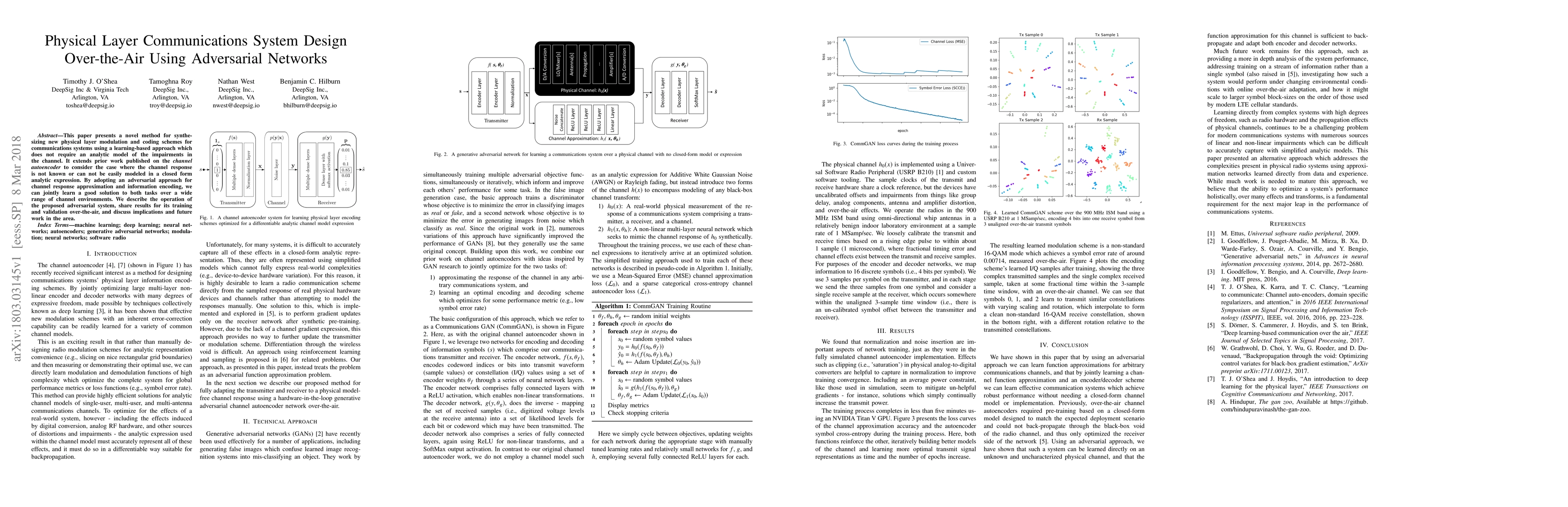 This paper introduces a novel adversarial network-based method for designing physical layer communication systems without relying on analytic channel models. It demonstrates the effectiveness of the proposed adversarial system through over-the-air training and validation, highlighting its potential for diverse channel environments.