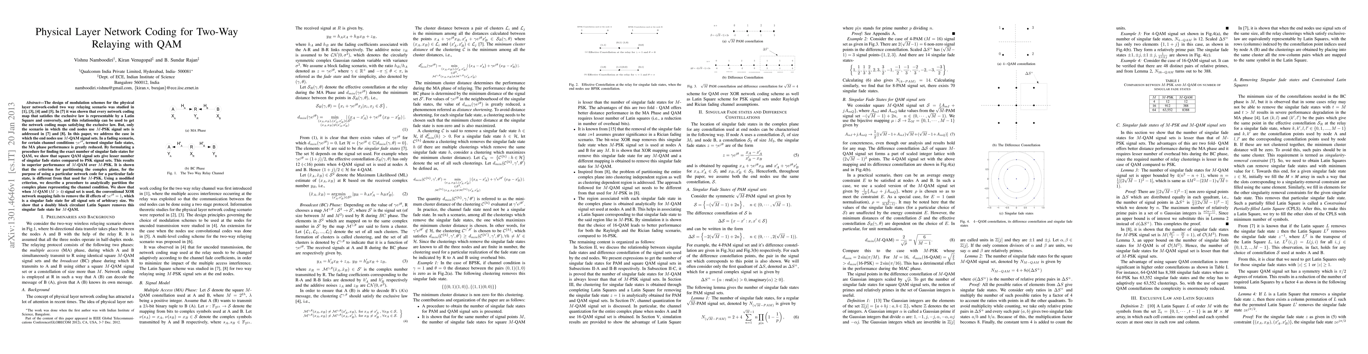 This paper investigates the use of $M$-QAM signal sets in physical layer network coding for two-way relaying, demonstrating that square QAM provides fewer singular fade states compared to $M$-PSK, leading to better performance. It introduces a modified criterion for partitioning the complex plane and shows that a doubly block circulant Latin Square can effectively mitigate the singular fade state for $M$-QAM.