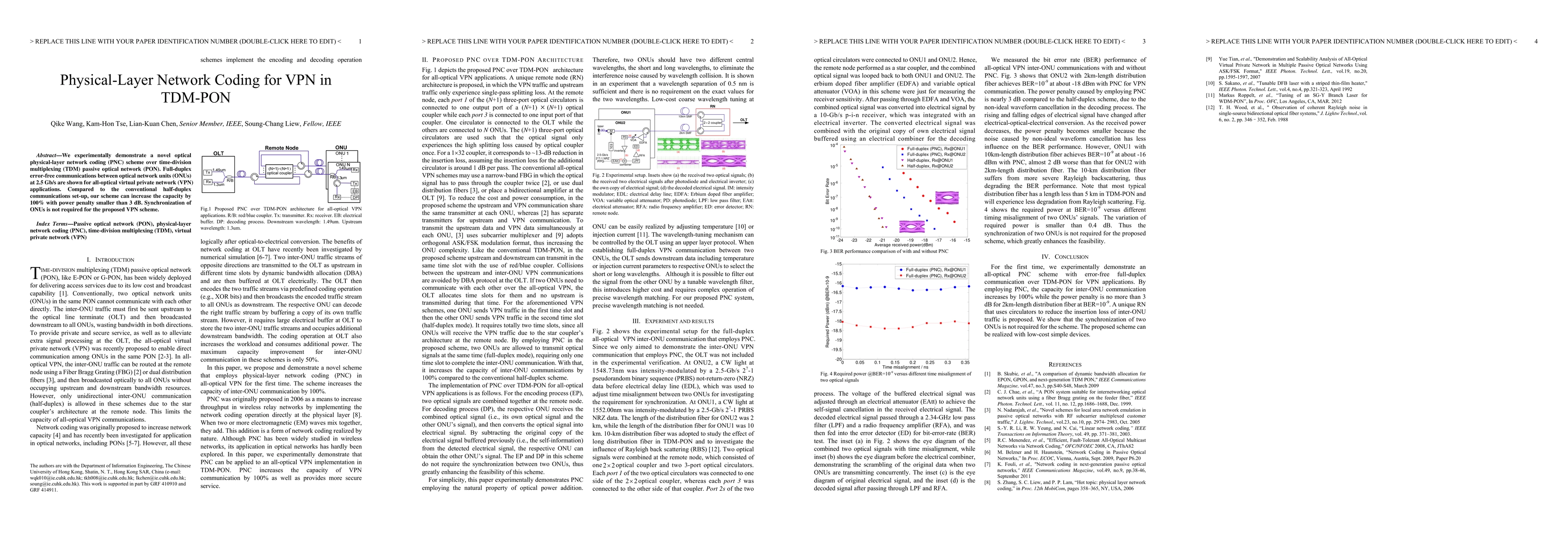 This paper demonstrates a novel optical physical-layer network coding scheme for VPN in TDM-PON, achieving 100% capacity increase with reduced power penalty, without requiring ONU synchronization.