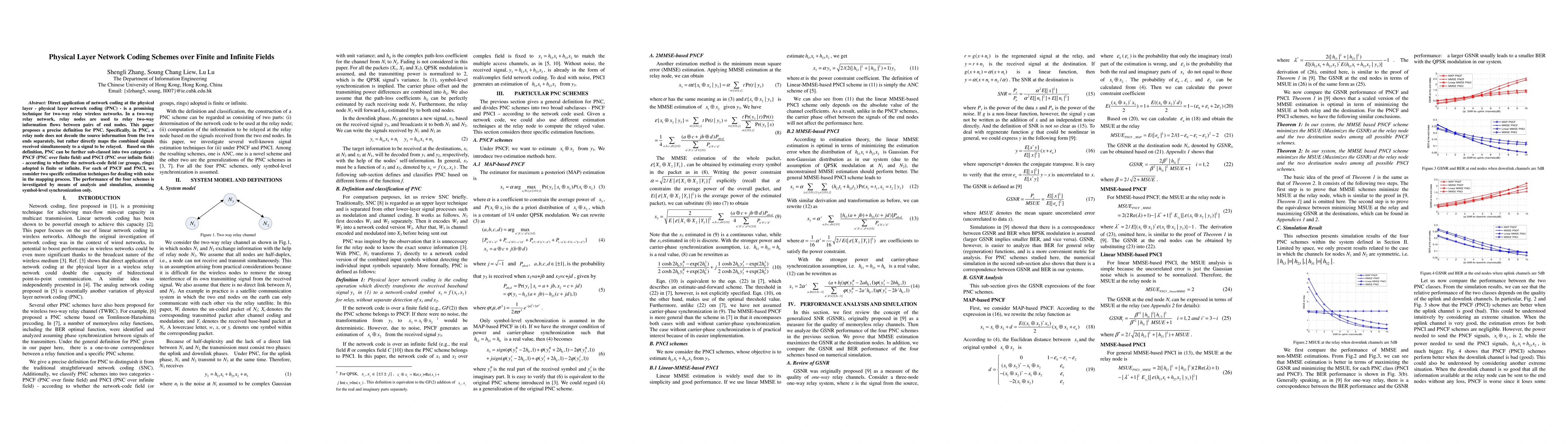 This paper defines physical layer network coding (PNC) for two-way relay wireless networks, distinguishing between PNC over finite fields (PNC-F) and infinite fields (PNC-I). It investigates two estimation techniques for noise handling in each category and evaluates their performance through analysis and simulation.
