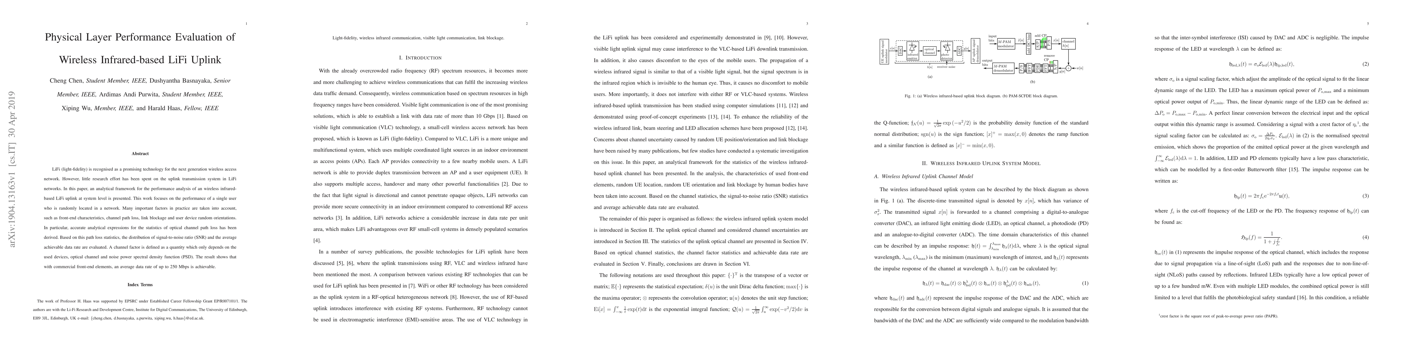 Researchers evaluated the performance of a wireless infrared-based LiFi uplink system, finding that commercial front-end elements can achieve data rates of up to 250 Mbps. The study provides an analytical framework for understanding the impact of various factors on LiFi network performance.