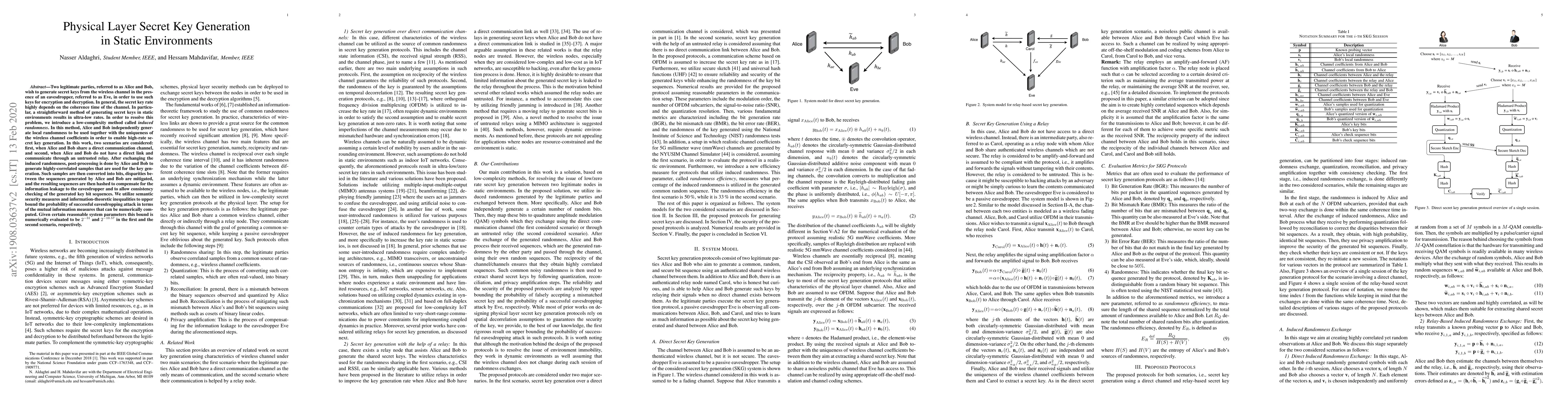 Two legitimate parties, referred to as Alice and Bob, wish to generate secret keys from the wireless channel in the presence of an eavesdropper, referred to as Eve, in order to use such keys for encryption and decryption. In general, the secret key rate highly depends on the coherence time of the channel. In particular, a straightforward method of generating secret keys in static environments results in ultra-low rates. In order to resolve this problem, we introduce a low-complexity method called induced randomness. In this method, Alice and Bob independently generate local randomness to be used together with the uniqueness of the wireless channel coefficients in order to enable high-rate secret key generation. In this work, two scenarios are considered: first, when Alice and Bob share a direct communication channel, and second, when Alice and Bob do not have a direct link and communicate through an untrusted relay. After exchanging the induced randomness, post-processing is done by Alice and Bob to generate highly-correlated samples that are used for the key generation. Such samples are then converted into bits, disparities between the sequences generated by Alice and Bob are mitigated, and the resulting sequences are then hashed to compensate for the information leakage to the eavesdropper and to allow consistency checking of the generated key bit sequences. We utilize semantic security measures and information-theoretic inequalities to upper bound the probability of successful eavesdropping attack in terms of the mutual information measures that can be numerically computed. Given certain reasonable system parameters this bound is numerically evaluated to be $2^{-31}$ and $2^{-10.57}$ in the first and the second scenario, respectively.
