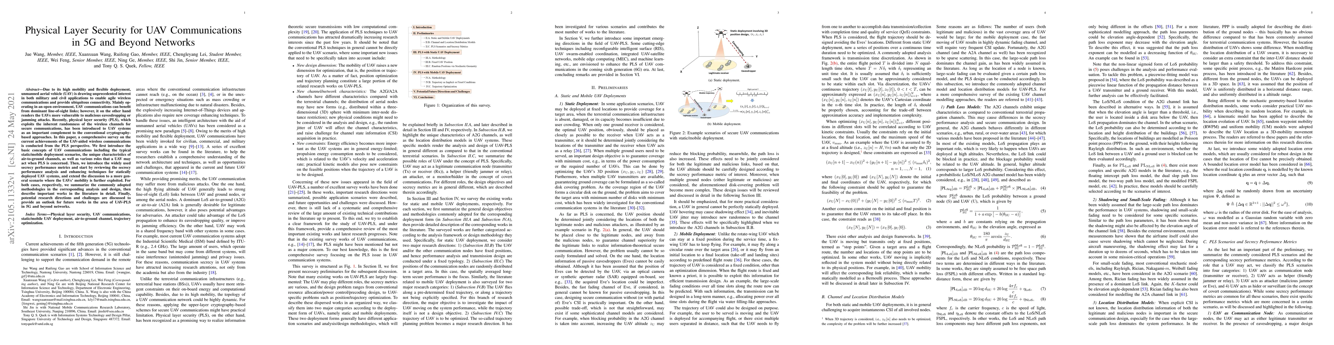 This paper surveys the current state of UAV communications security from a physical layer security (PLS) perspective, highlighting the unique challenges posed by UAVs' mobility and open environment. It reviews methodologies for enhancing secrecy performance in both static and mobile UAV deployments, and discusses potential future research directions in PLS for UAVs in 5G and beyond networks.