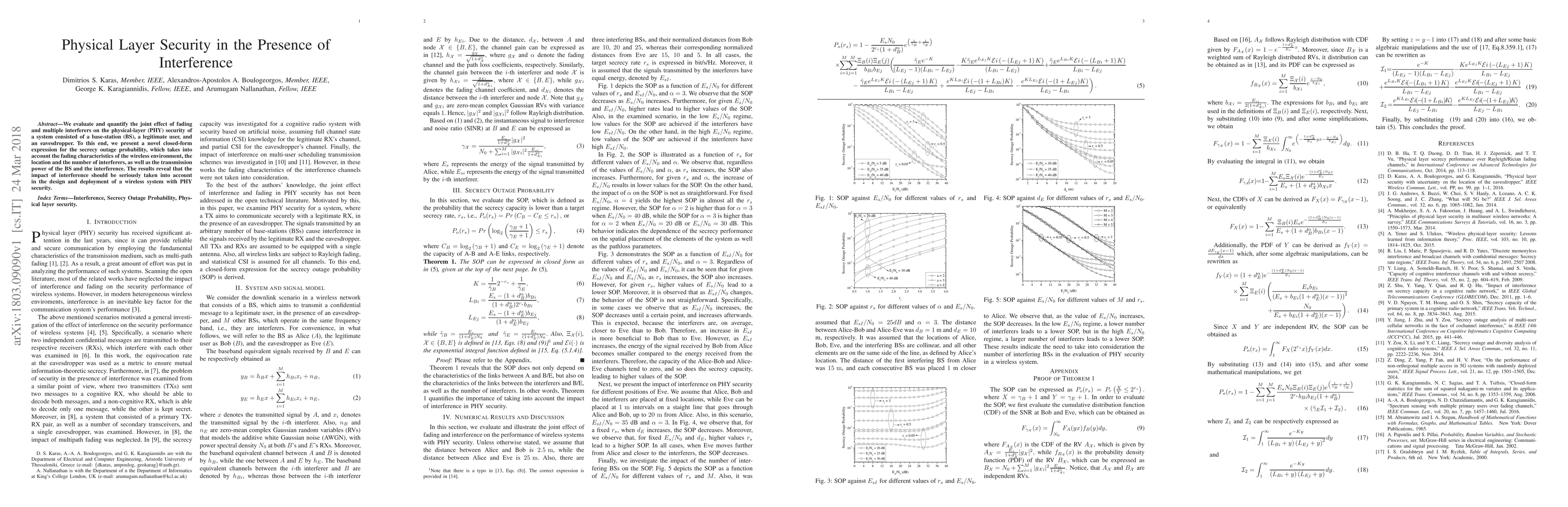 This paper evaluates the impact of fading and multiple interferers on physical-layer security in wireless systems, presenting a novel closed-form expression for secrecy outage probability. The findings emphasize the importance of considering interference in the design and deployment of secure wireless networks.