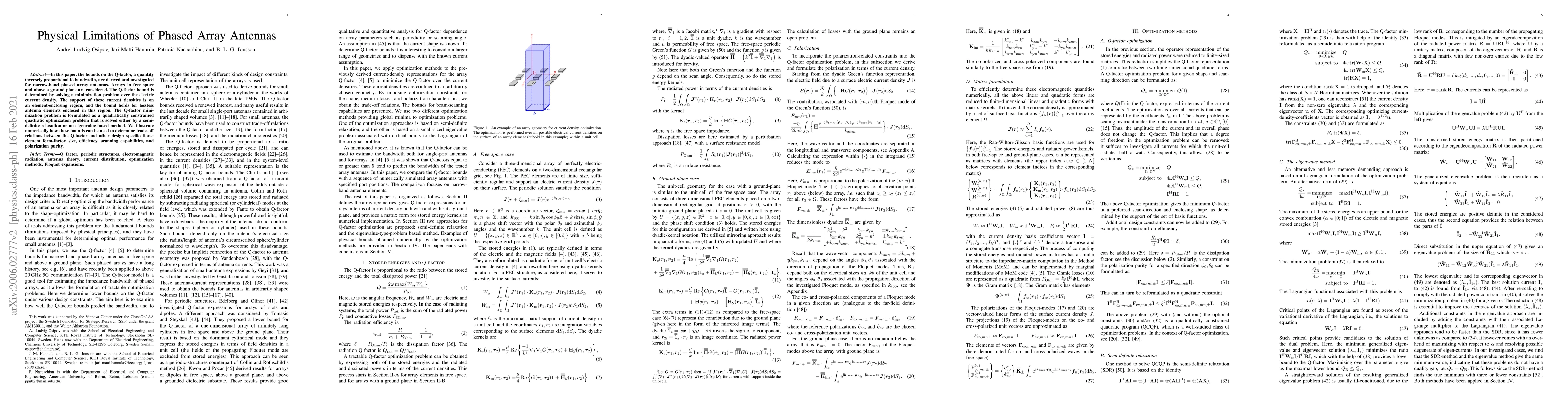 The paper introduces two optimization methods for obtaining Q-factor-based bandwidth estimates for phased array antennas, which efficiently solve the non-convex problem of Q-factor minimization and determine optimal current densities.