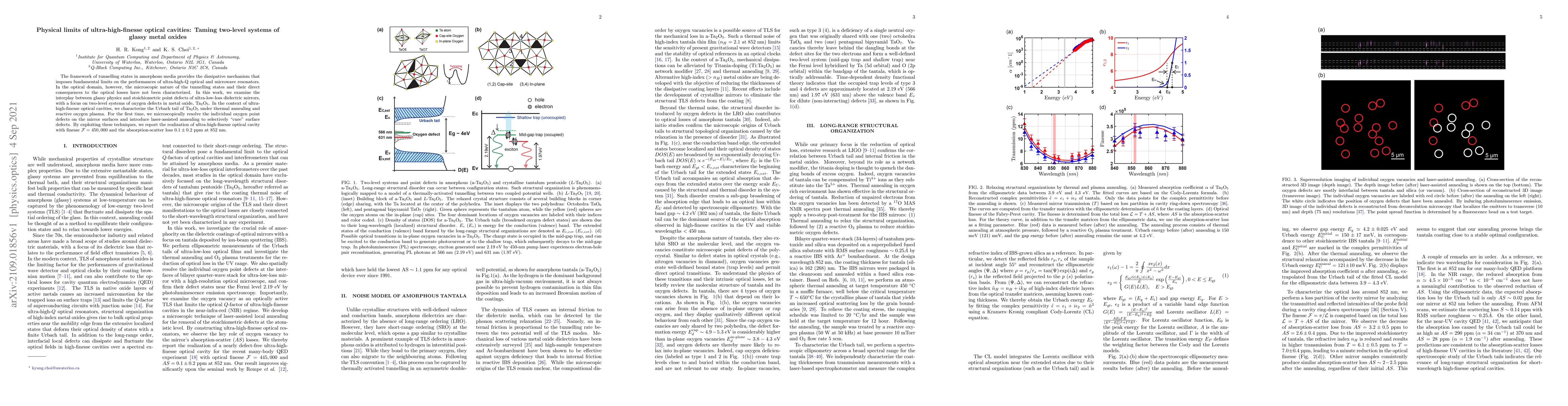 This paper investigates the fundamental limits of ultra-high-finesse optical cavities imposed by tunnelling states in amorphous media, focusing on the microscopic nature of oxygen defects in Ta$_2$O$_5$. The study reveals the effectiveness of laser-assisted annealing to cure surface defects, achieving a cavity finesse of $\mathcal{F}=450,000$ and absorption-scatter loss of $0.1 \pm 0.2$ ppm at $852$ nm.