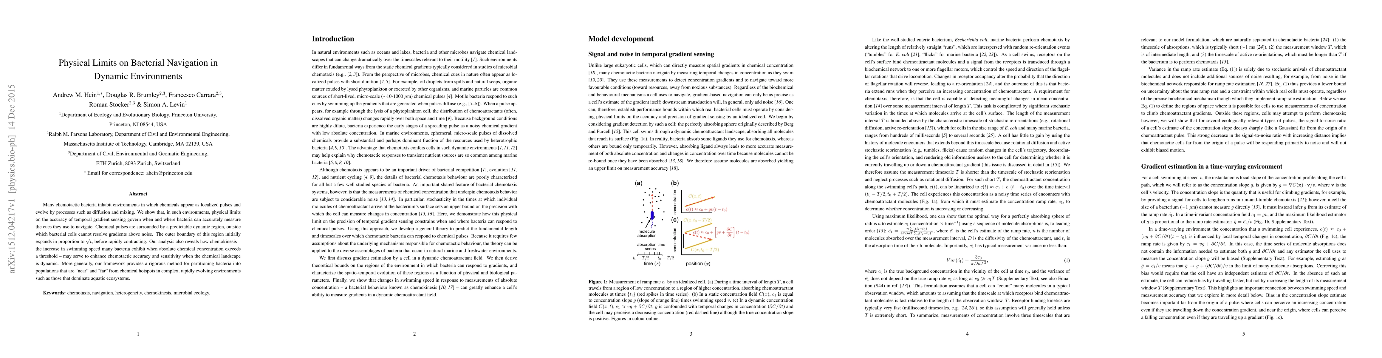 This paper investigates the physical constraints on bacterial navigation in dynamic chemical environments, demonstrating that temporal gradient sensing accuracy limits bacterial ability to detect chemical cues. It also explores how chemokinesis can improve navigation in dynamic landscapes, providing a framework to classify bacteria based on their proximity to chemical hotspots.