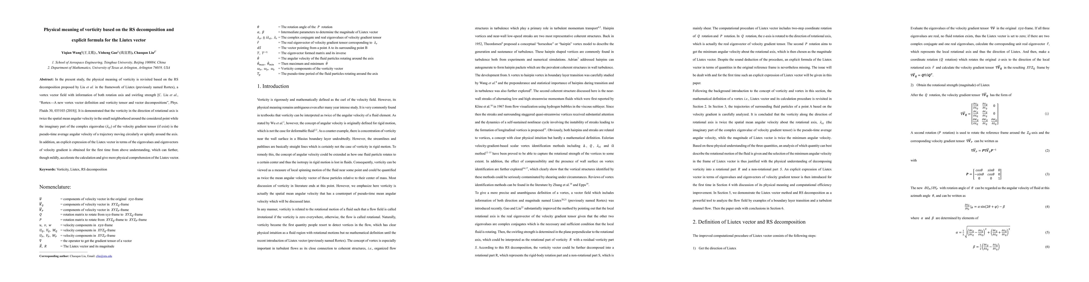 This paper revisits the physical meaning of vorticity in the context of Liutex, proposing a new RS decomposition framework. It reveals that vorticity along the rotational axis is twice the spatial mean angular velocity, and the imaginary part of the complex eigenvalue of the velocity gradient tensor represents the pseudo-time average angular velocity of circular or spiral trajectories, while also providing an explicit formula for the Liutex vector.