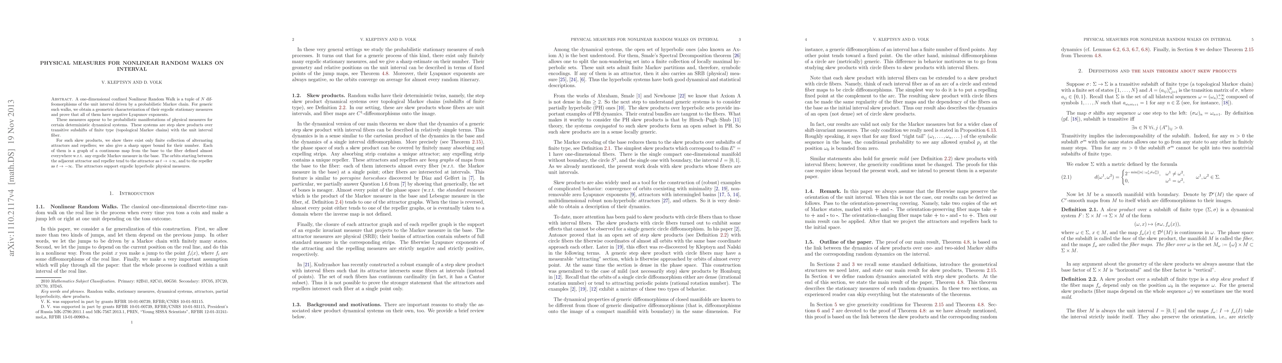 A one-dimensional confined Nonlinear Random Walk is a tuple of $N$ diffeomorphisms of the unit interval driven by a probabilistic Markov chain. For generic such walks, we obtain a geometric characterization of their ergodic stationary measures and prove that all of them have negative Lyapunov exponents. These measures appear to be probabilistic manifestations of physical measures for certain deterministic dynamical systems. These systems are step skew products over transitive subshifts of finite type (topological Markov chains) with the unit interval fiber. For such skew products, we show there exist only finite collection of alternating attractors and repellers; we also give a sharp upper bound for their number. Each of them is a graph of a continuous map from the base to the fiber defined almost everywhere w.r.t. any ergodic Markov measure in the base. The orbits starting between the adjacent attractor and repeller tend to the attractor as $t \to +\infty$, and to the repeller as $t \to -\infty$. The attractors support ergodic hyperbolic physical measures.