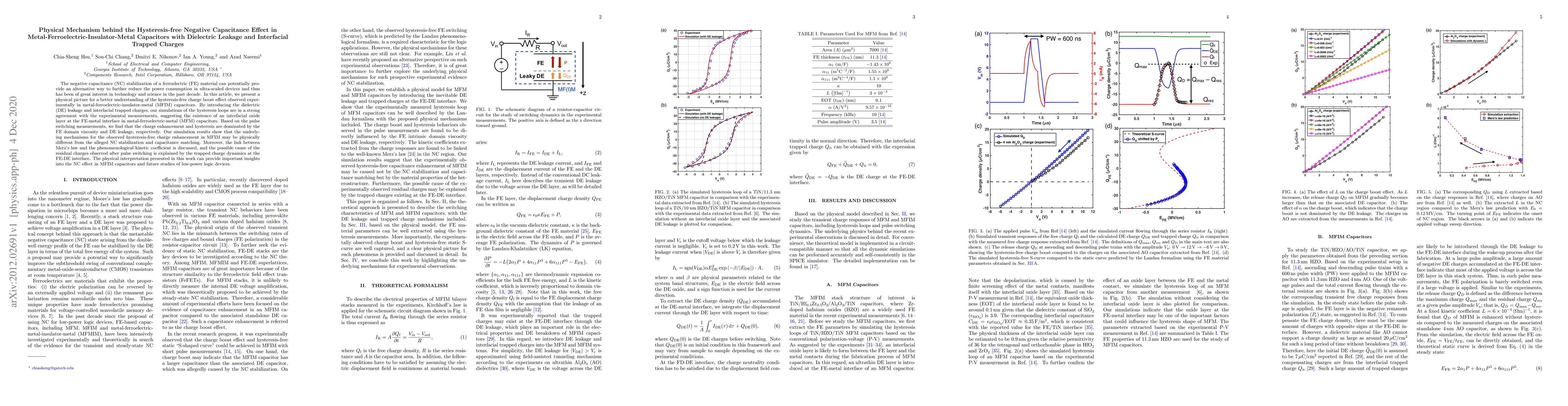 Researchers found that hysteresis-free negative capacitance in metal-ferroelectric-insulator-metal capacitors is caused by dielectric leakage and interfacial trapped charges, revealing a new understanding of the phenomenon.