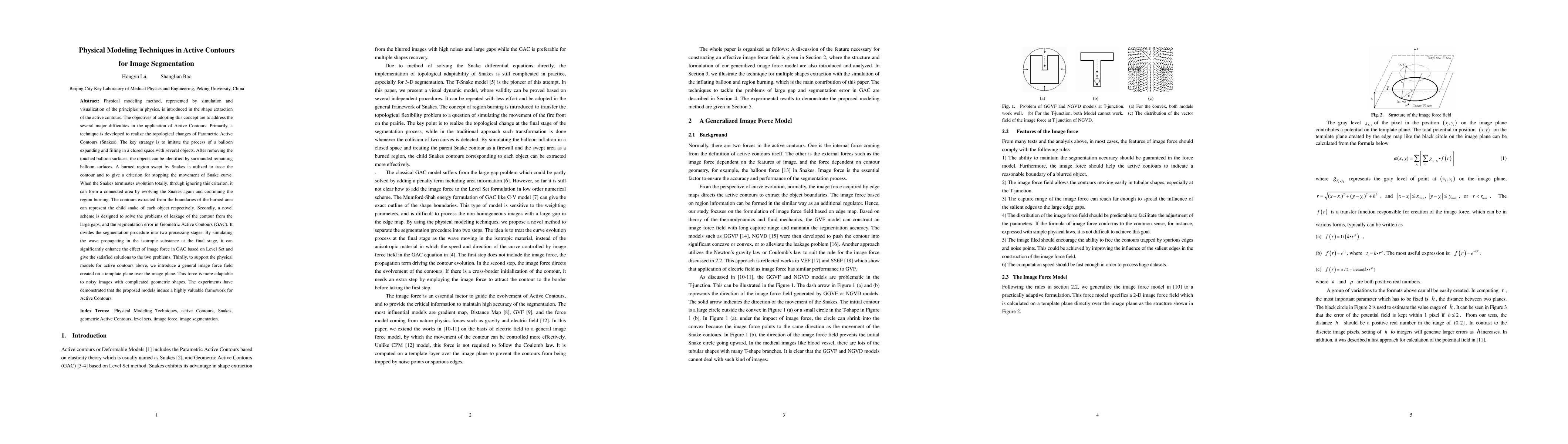 This paper introduces physical modeling techniques to improve active contour methods for image segmentation, focusing on addressing topological changes, leakage issues, and segmentation errors. The approach simulates balloon expansion to extract contours and employs a novel scheme to enhance image force effects, creating a more adaptable force field for complex geometric shapes.