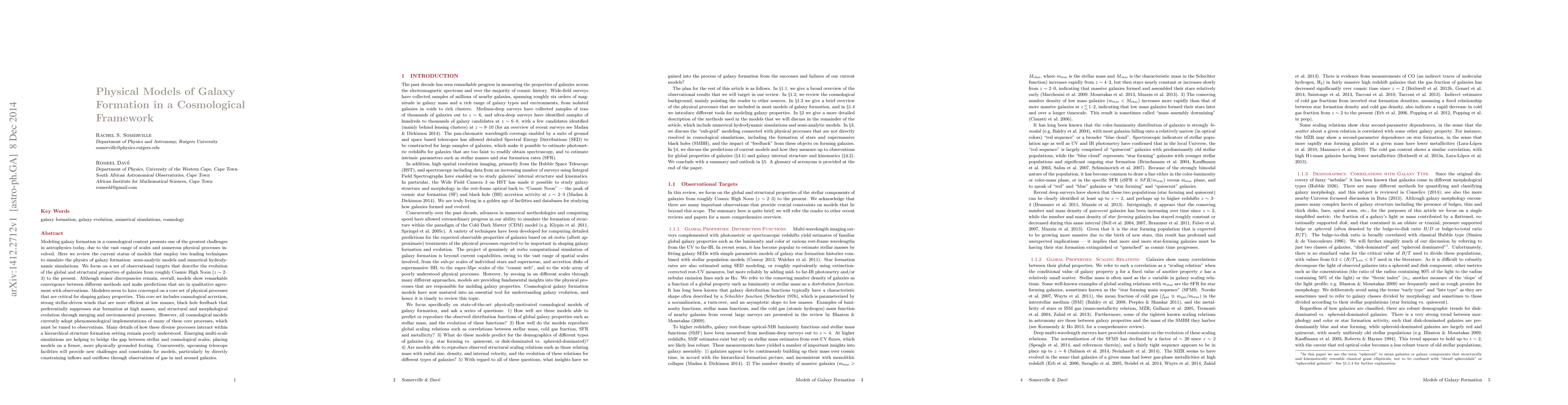 Modeling galaxy formation in a cosmological context presents one of the greatest challenges in astrophysics today, due to the vast range of scales and numerous physical processes involved. Here we review the current status of models that employ two leading techniques to simulate the physics of galaxy formation: semi-analytic models and numerical hydrodynamic simulations. We focus on a set of observational targets that describe the evolution of the global and structural properties of galaxies from roughly Cosmic High Noon ($z\sim 2-3$) to the present. Although minor discrepancies remain, overall, models show remarkable convergence between different methods and make predictions that are in qualitative agreement with observations. Modelers seem to have converged on a core set of physical processes that are critical for shaping galaxy properties. This core set includes cosmological accretion, strong stellar-driven winds that are more efficient at low masses, black hole feedback that preferentially suppresses star formation at high masses, and structural and morphological evolution through merging and environmental processes. However, all cosmological models currently adopt phenomenological implementations of many of these core processes, which must be tuned to observations. Many details of how these diverse processes interact within a hierarchical structure formation setting remain poorly understood. Emerging multi-scale simulations are helping to bridge the gap between stellar and cosmological scales, placing models on a firmer, more physically grounded footing. Concurrently, upcoming telescope facilities will provide new challenges and constraints for models, particularly by directly constraining inflows and outflows through observations of gas in and around galaxies.