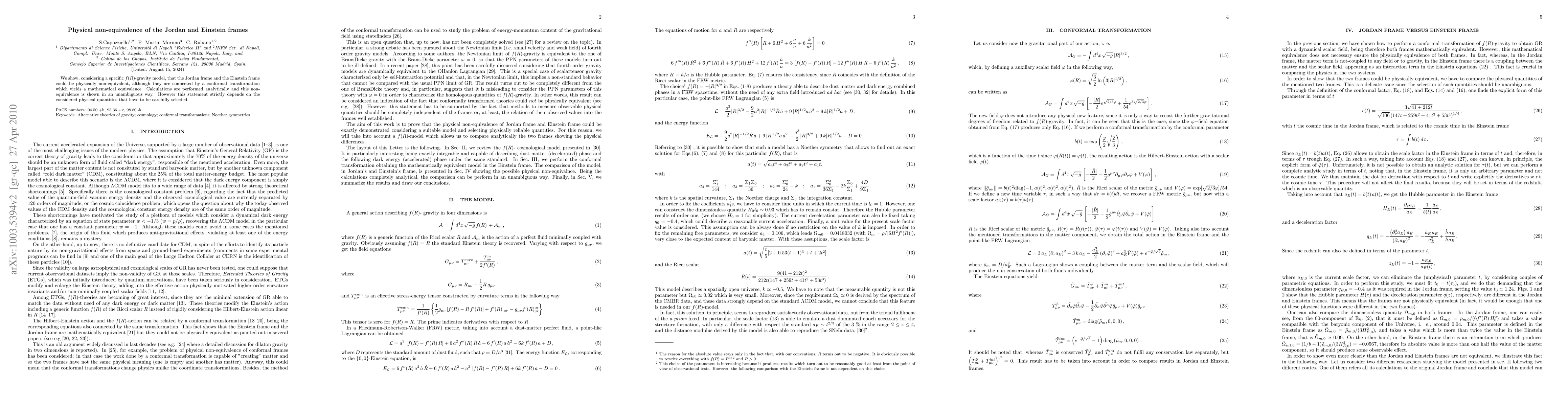 This paper demonstrates that, despite the Jordan and Einstein frames in a specific f(R)-gravity model being mathematically equivalent through a conformal transformation, they are physically non-equivalent, as shown through analytical calculations. This highlights an unambiguous physical distinction between the two frames.