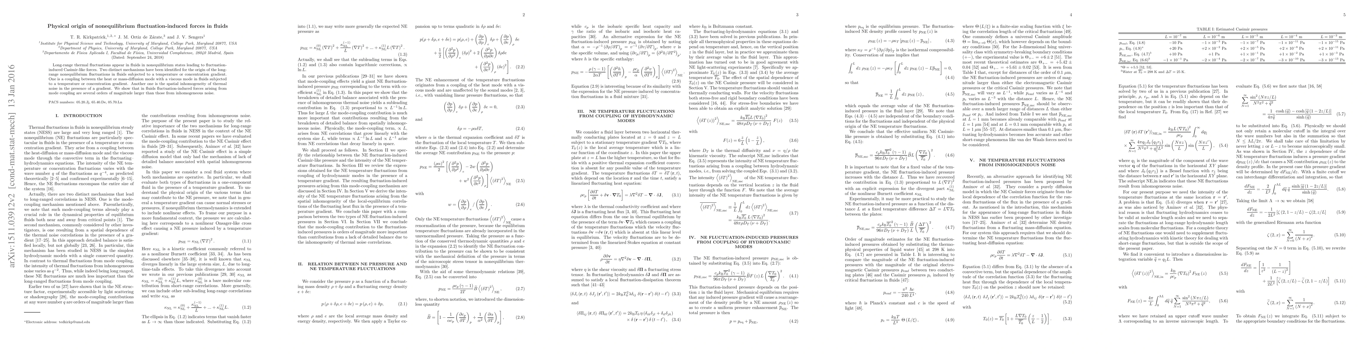 This paper explores the physical origins of nonequilibrium fluctuation-induced forces in fluids, identifying two mechanisms: mode coupling between heat/mass diffusion and viscous modes, and spatial inhomogeneity of thermal noise. It concludes that mode coupling generates significantly larger fluctuation-induced forces than inhomogeneous noise.