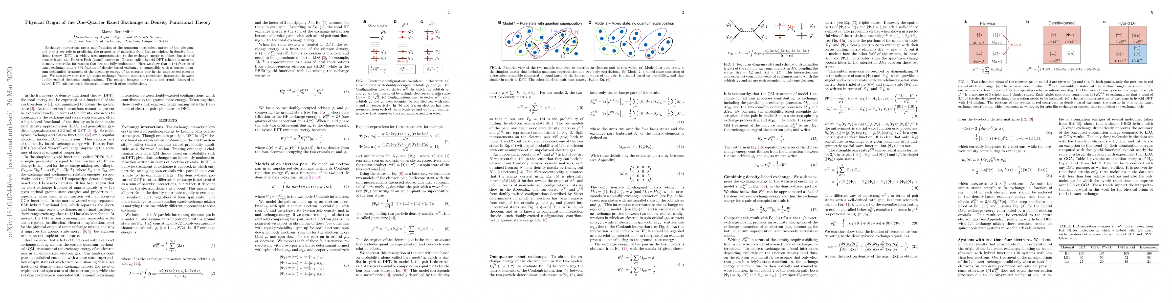 This paper elucidates the physical origin of the one-quarter exact exchange in density functional theory (DFT), demonstrating that a 1/4 fraction of exact exchange combined with 3/4 density-based exchange aligns with a correct quantum mechanical treatment of electron pairs. It also reveals that this exact exchange fraction mimics correlation interactions in doubly-excited electronic configurations.