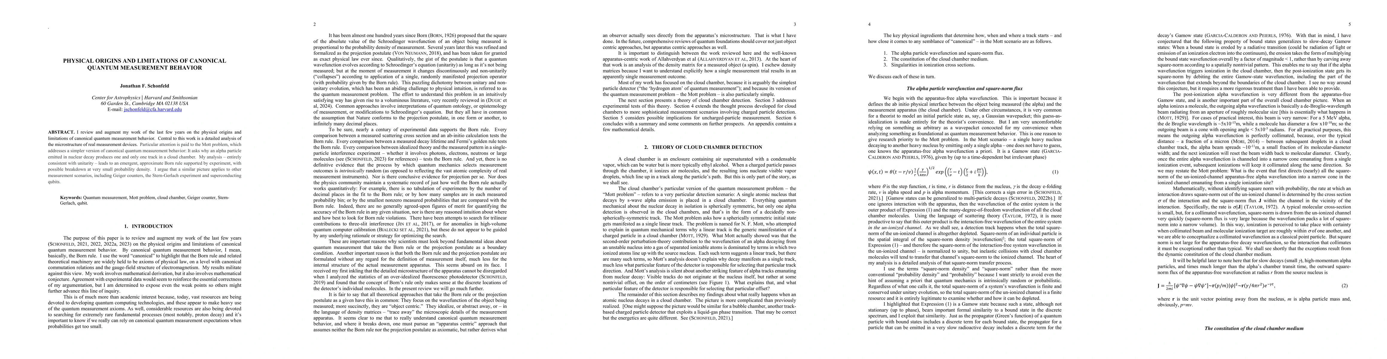 I review and augment my work of the last few years on the physical origins and limitations of canonical quantum measurement behavior. Central to this work is a detailed analysis of the microstructure of real measurement devices. Particular attention is paid to the Mott problem, which addresses a simpler version of canonical quantum measurement behavior: It asks why an alpha particle emitted in a nuclear decay produces one and only one track in a cloud chamber. My analysis - entirely consistent with unitarity - leads to an emergent, approximate Born rule supported by experiment, with possible breakdown at very small probability density. I argue that a similar picture applies to other measurement scenarios, including Geiger counters, the Stern-Gerlach experiment and superconducting qubits.