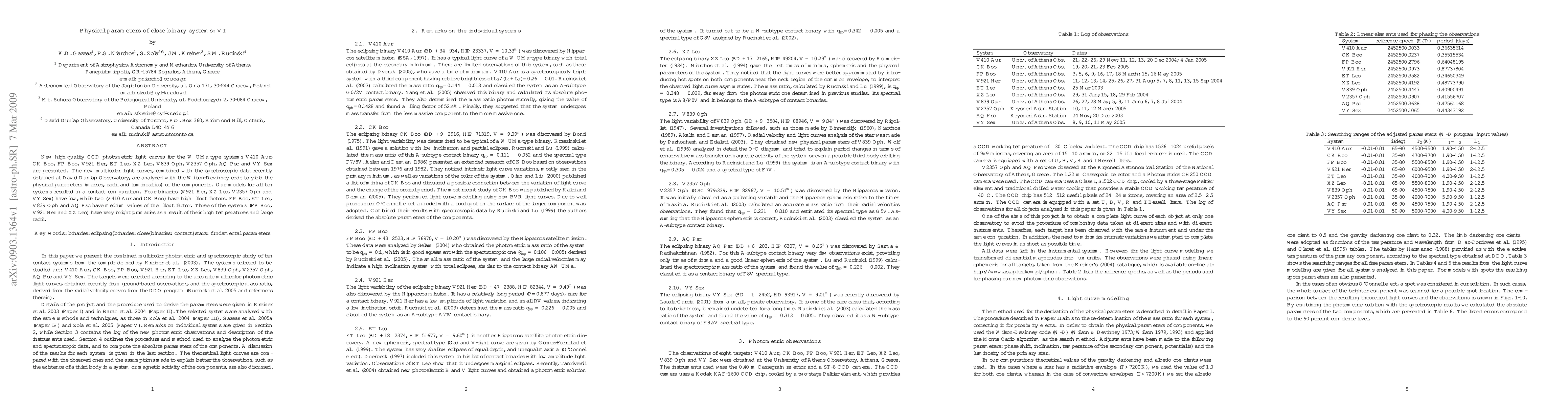 New high-quality CCD photometric light curves for the W UMa-type systems V410 Aur, CK Boo, FP Boo, V921 Her, ET Leo, XZ Leo, V839 Oph, V2357 Oph, AQ Psc and VY Sex are presented. The new multicolor light curves, combined with the spectroscopic data recently obtained at David Dunlap Observatory, are analyzed with the Wilson-Devinney code to yield the physical parameters (masses, radii and luminosities) of the components. Our models for all ten systems resulted in a contact configuration. Four binaries (V921 Her, XZ Leo, V2357 Oph and VY Sex) have low, while two (V410 Aur and CK Boo) have high fill-out factors. FP Boo, ET Leo, V839 Oph and AQ Psc have medium values of the fill-out factor. Three of the systems (FP Boo, V921 Her and XZ Leo) have very bright primaries as a result of their high temperatures and large radii.