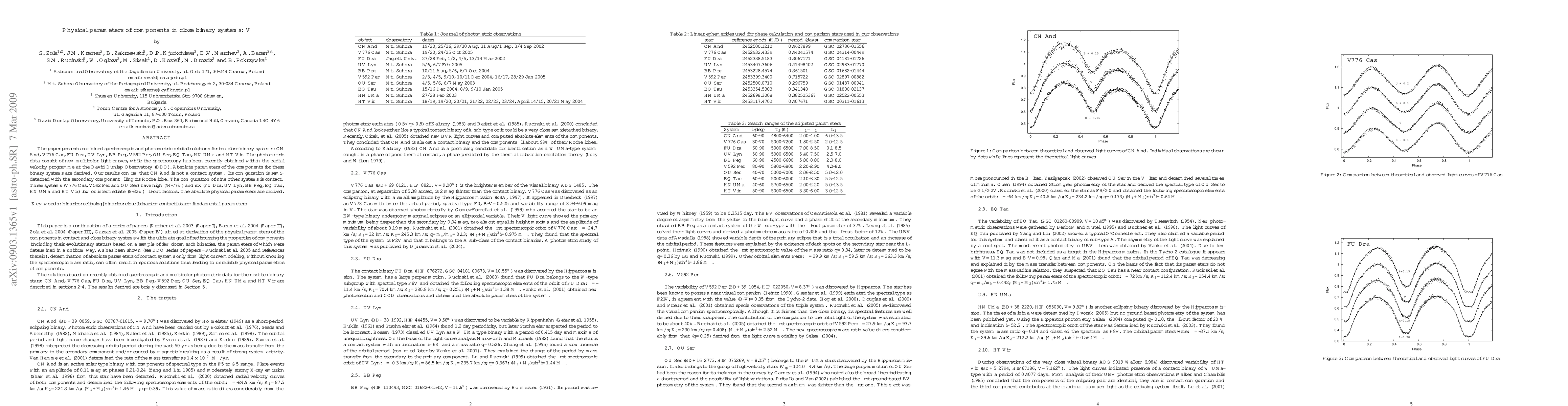 The paper presents combined spectroscopic and photometric orbital solutions for ten close binary systems: CN And, V776 Cas, FU Dra, UV Lyn, BB Peg, V592 Per, OU Ser, EQ Tau, HN UMa and HT Vir. The photometric data consist of new multicolor light curves, while the spectroscopy has been recently obtained within the radial velocity program at the David Dunlap Observatory (DDO). Absolute parameters of the components for these binary systems are derived. Our results confirm that CN And is not a contact system. Its configuration is semi-detached with the secondary component filling its Roche lobe. The configuration of nine other systems is contact. Three systems (V776 Cas, V592 Per and OU Ser) have high (44-77%) and six (FU Dra, UV Lyn, BB Peg, EQ Tau, HN UMa and HT Vir) low or intermediate (8-32%) fill-out factors. The absolute physical parameters are derived.