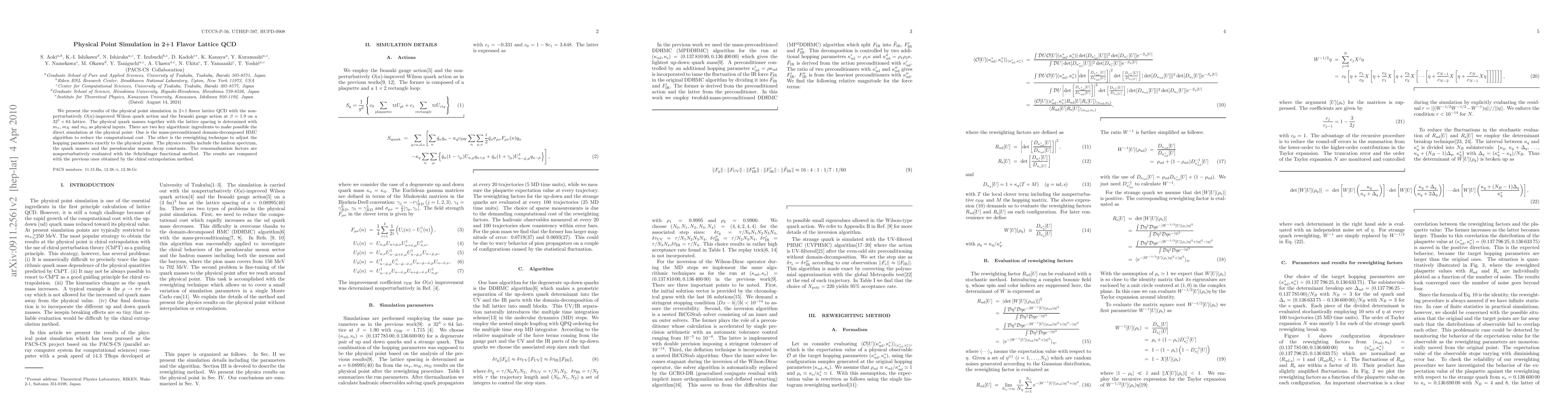 We present the results of the physical point simulation in 2+1 flavor lattice QCD with the nonperturbatively $O(a)$-improved Wilson quark action and the Iwasaki gauge action at $\beta=1.9$ on a $32^3 \times 64$ lattice. The physical quark masses together with the lattice spacing is determined with $m_\pi$, $m_K$ and $m_\Omega$ as physical inputs. There are two key algorithmic ingredients to make possible the direct simulation at the physical point: One is the mass-preconditioned domain-decomposed HMC algorithm to reduce the computational cost. The other is the reweighting technique to adjust the hopping parameters exactly to the physical point. The physics results include the hadron spectrum, the quark masses and the pseudoscalar meson decay constants. The renormalization factors are nonperturbatively evaluated with the Schr{\"o}dinger functional method. The results are compared with the previous ones obtained by the chiral extrapolation method.
