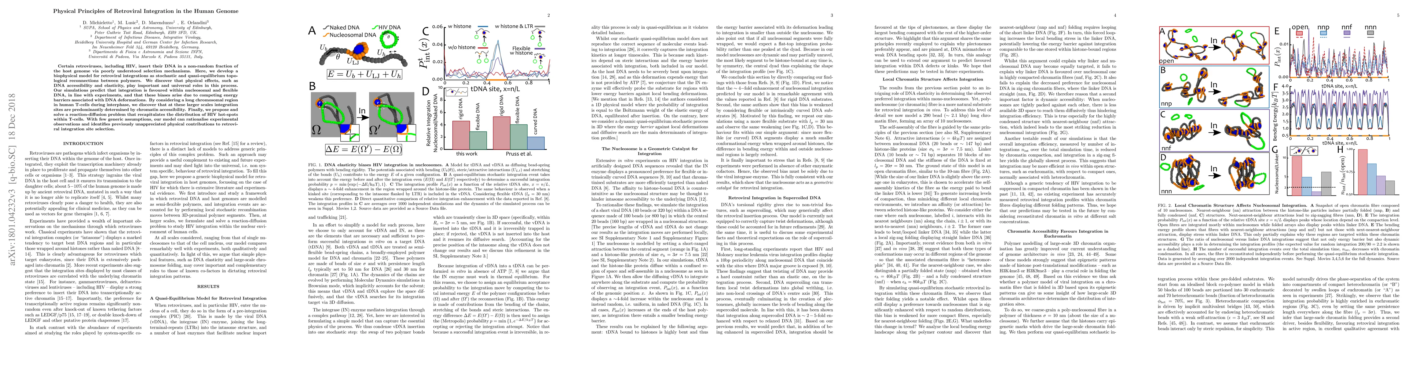 This paper develops a biophysical model to explain retroviral integration in the human genome, showing that DNA accessibility and elasticity influence integration preferences. The model predicts that integration favors nucleosomal and flexible DNA regions, aligning with experimental findings and highlighting the role of chromatin accessibility in determining integration sites.
