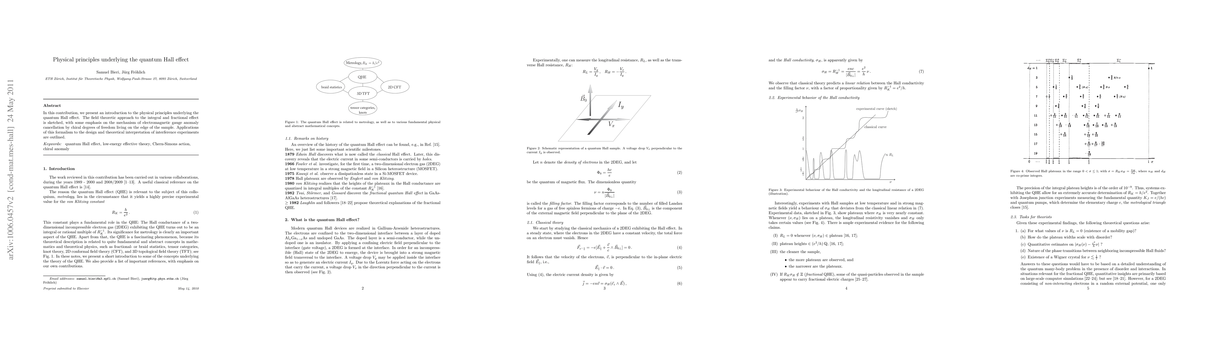 In this contribution, we present an introduction to the physical principles underlying the quantum Hall effect. The field theoretic approach to the integral and fractional effect is sketched, with some emphasis on the mechanism of electromagnetic gauge anomaly cancellation by chiral degrees of freedom living on the edge of the sample. Applications of this formalism to the design and theoretical interpretation of interference experiments are outlined.