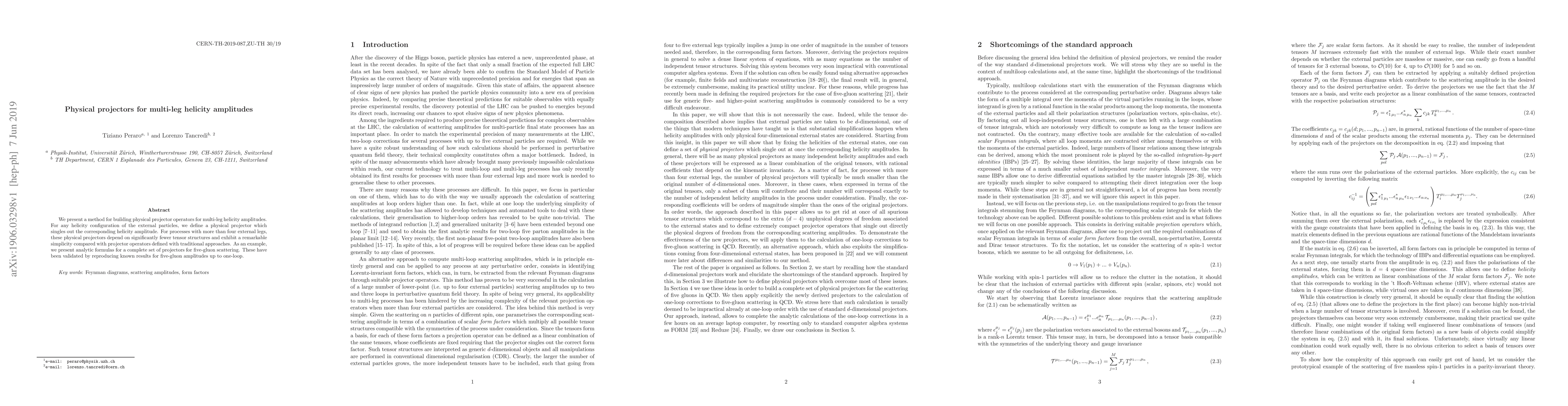This paper introduces a novel method for constructing physical projector operators for multi-leg helicity amplitudes, significantly simplifying the process compared to traditional approaches. The method is exemplified with analytic formulas for five-gluon scattering, which reproduce known results for five-gluon amplitudes up to one-loop.
