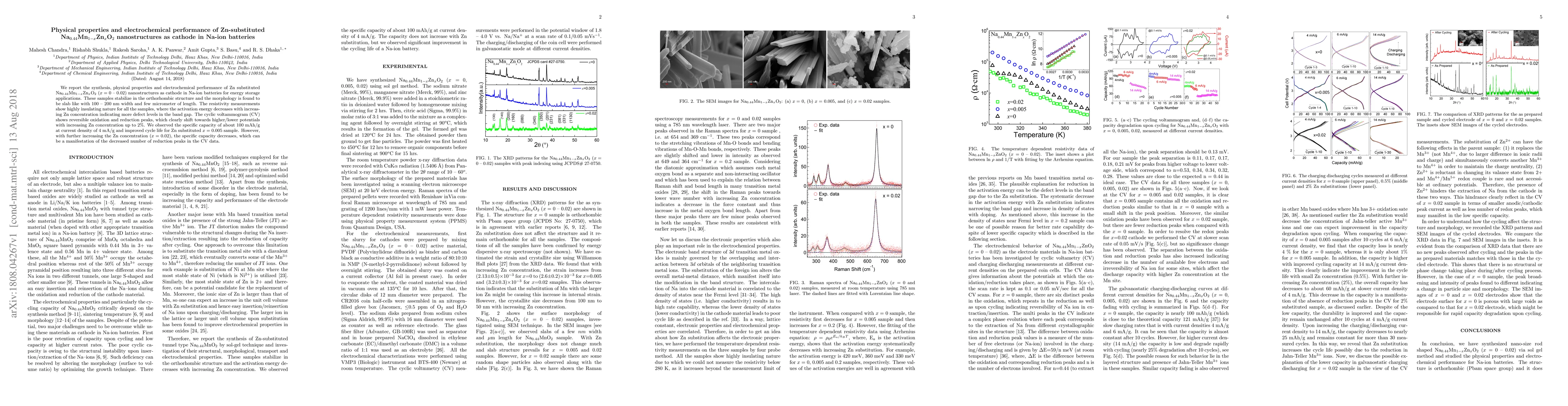 We report the synthesis, physical properties and electrochemical performance of Zn substituted Na$_{0.44}$Mn$_{1-x}$Zn$_x$O$_2$ ($x=$ 0 -- 0.02) nanostructures as cathode in Na-ion batteries for energy storage applications. These samples stabilize in the orthorhombic structure and the morphology is found to be slab like with 100 -- 200~nm width and few micrometer of length. The resistivity measurements show highly insulating nature for all the samples, where the activation energy decreases with increasing Zn concentration indicating more defect levels in the band gap. The cyclic voltammogram (CV) shows reversible oxidation and reduction peaks, which clearly shift towards higher/lower potentials with increasing Zn concentration up to 2\%. We observed the specific capacity of about 100~mAh/g at current density of 4 mA/g and improved cycle life for Zn substituted $x=$ 0.005 sample. However, with further increasing the Zn concentration ($x=$ 0.02), the specific capacity decreases, which can be a manifestation of the decreased number of reduction peaks in the CV data.