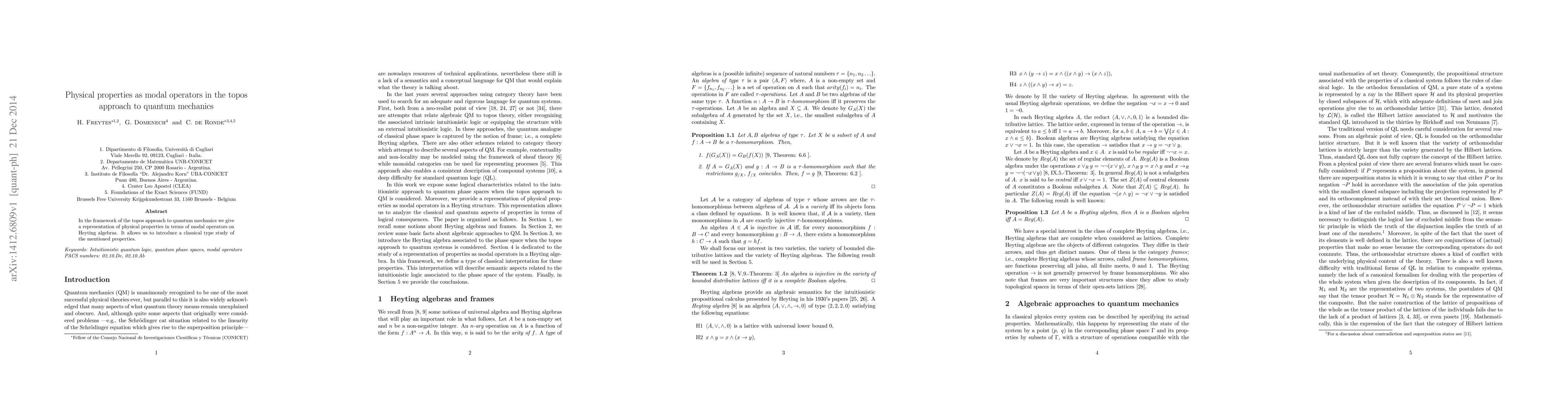 This research presents a method using topos approach to quantum mechanics, representing physical properties via modal operators on Heyting algebras. It enables a classical analysis of these properties.
