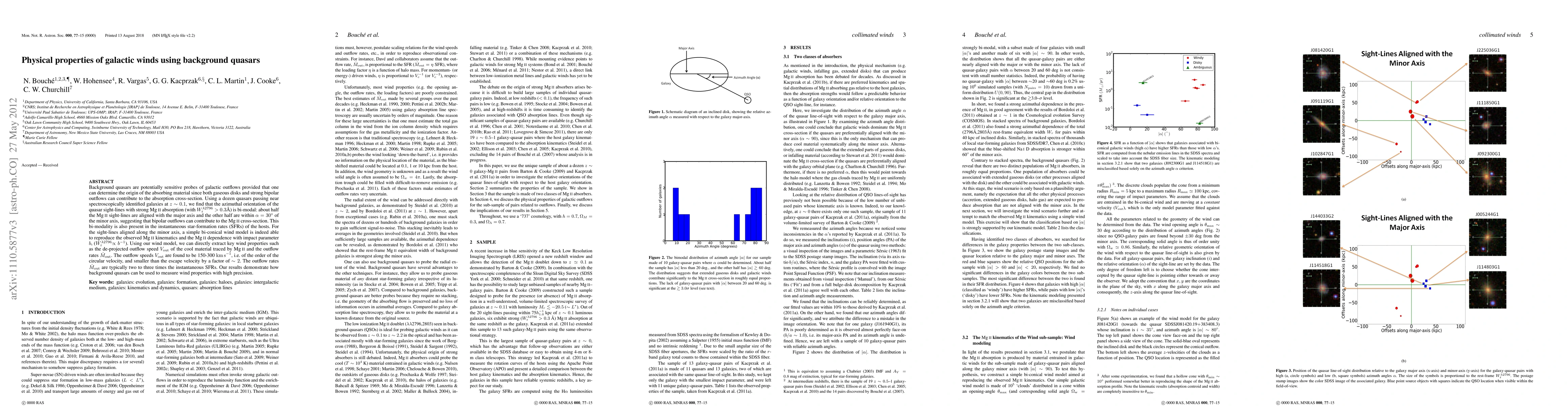 A study using background quasars to analyze galactic winds reveals that bipolar outflows contribute significantly to absorption cross-sections, with outflow speeds of 150-300 km/s and rates typically two to three times the host galaxy's instantaneous star formation rate.