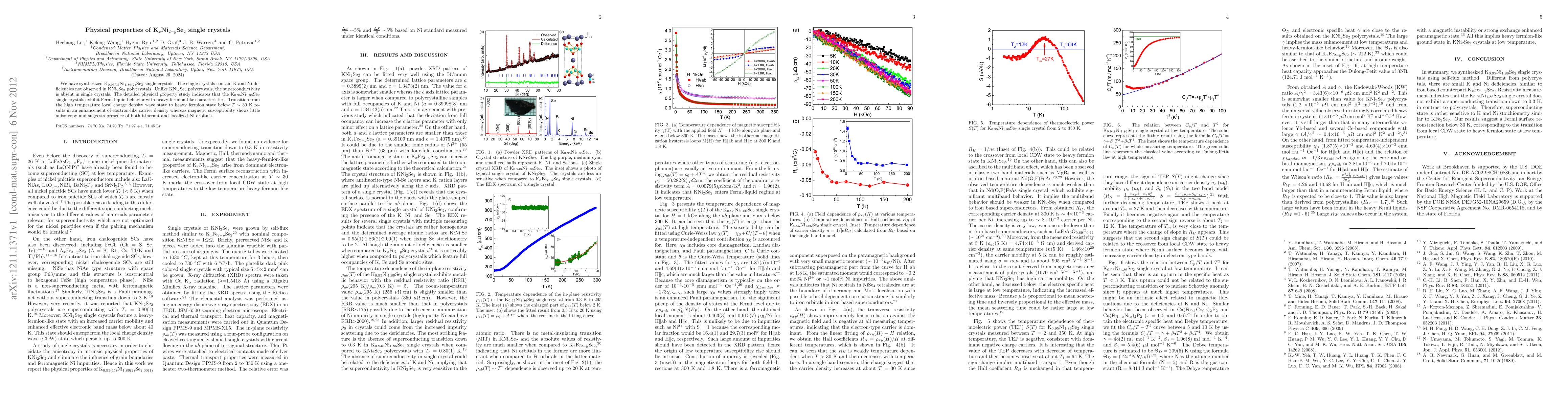 Researchers found single crystals of KxNi2-ySe2 exhibit Fermi liquid behavior with heavy-fermion-like characteristics, differing from polycrystals which display superconductivity.