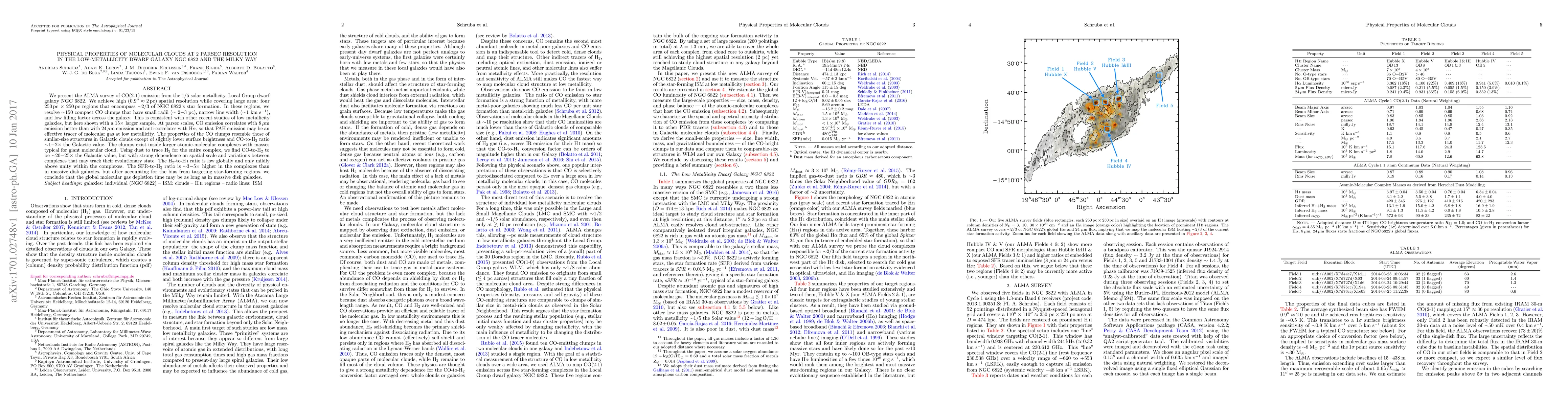 We present the ALMA survey of CO(2-1) emission from the 1/5 solar metallicity, Local Group dwarf galaxy NGC 6822. We achieve high (0.9 arcsec ~ 2 pc) spatial resolution while covering large area: four 250 pc x 250 pc regions that encompass ~2/3 of NGC 6822's star formation. In these regions, we resolve ~150 compact CO clumps that have small radii (~2-3 pc), narrow line width (~1 km/s), and low filling factor across the galaxy. This is consistent with other recent studies of low metallicity galaxies, but here shown with a 15 times larger sample. At parsec scales, CO emission correlates with 8 micron emission better than with 24 micron emission and anti-correlates with Halpha, so that PAH emission may be an effective tracer of molecular gas at low metallicity. The properties of the CO clumps resemble those of similar-size structures in Galactic clouds except of slightly lower surface brightness and CO-to-H2 ratio ~1-2 times the Galactic value. The clumps exist inside larger atomic-molecular complexes with masses typical for giant molecular cloud. Using dust to trace H2 for the entire complex, we find CO-to-H2 to be ~20-25 times the Galactic value, but with strong dependence on spatial scale and variations between complexes that may track their evolutionary state. The H2-to-HI ratio is low globally and only mildly above unity within the complexes. The SFR-to-H2 ratio is ~3-5 times higher in the complexes than in massive disk galaxies, but after accounting for the bias from targeting star-forming regions, we conclude that the global molecular gas depletion time may be as long as in massive disk galaxies.