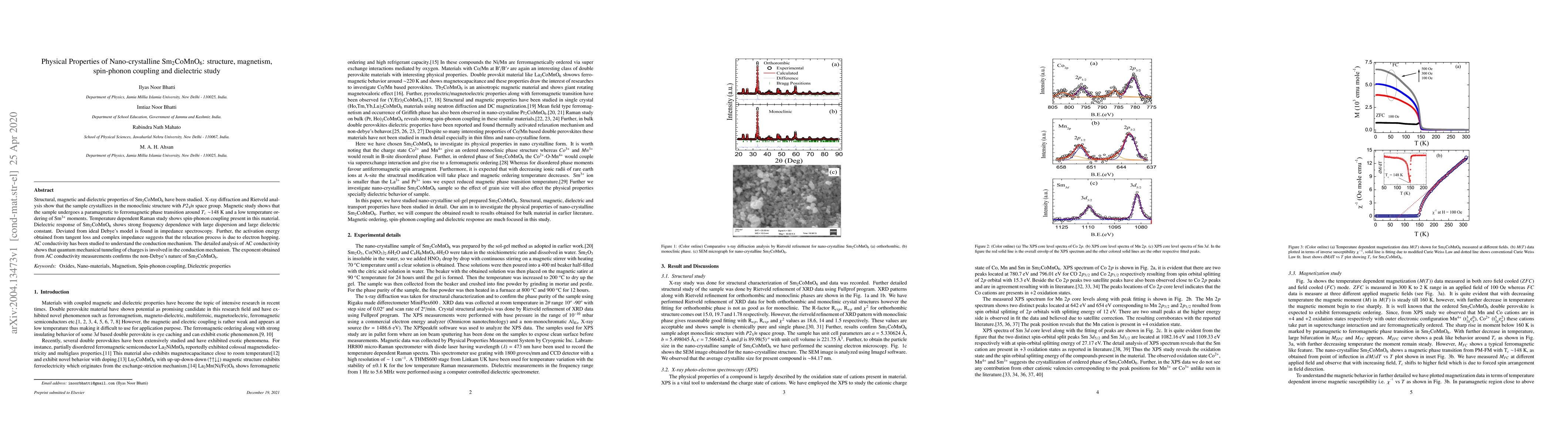 This study investigates the structural, magnetic, and dielectric properties of nano-crystalline Sm$_2$CoMnO$_6$, revealing its monoclinic P2$_1$/n structure, ferromagnetic transition at 148 K, and strong frequency-dependent dielectric response with evidence of spin-phonon coupling and quantum mechanical tunneling in its conduction mechanism.