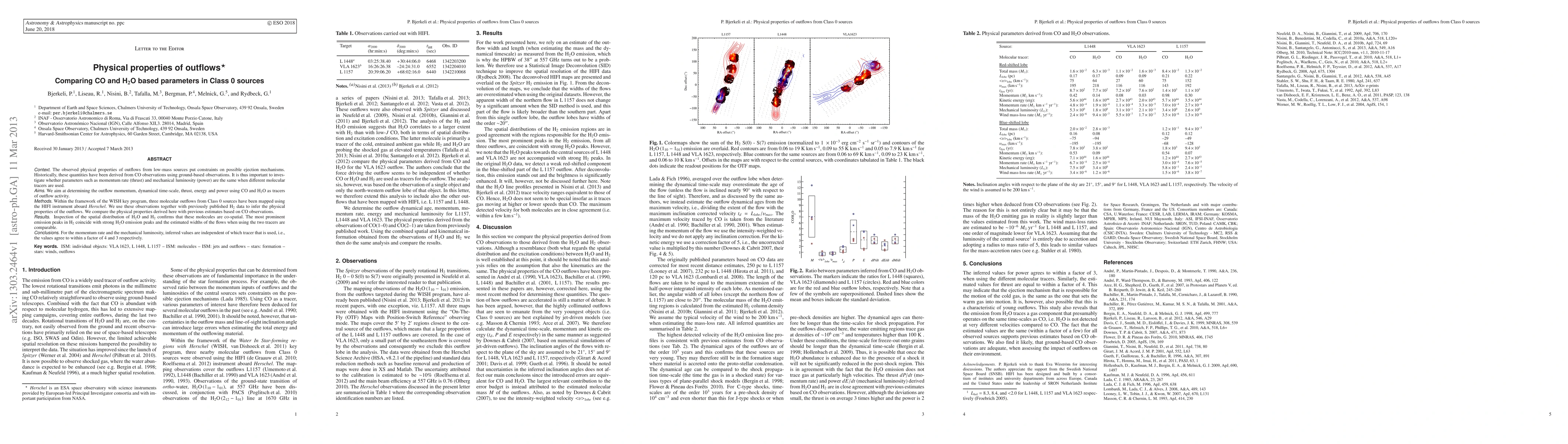Context. The observed physical properties of outflows from low-mass sources put constraints on possible ejection mechanisms. Historically, these quantities have been derived from CO using ground-based observations. It is thus important to investigate whether parameters such as momentum rate (thrust) and mechanical luminosity (power) are the same when different molecular tracers are used. Aims. We aim at determining the outflow momentum, dynamical time-scale, thrust, energy and power using CO and H2O as tracers of outflow activity. Methods. Within the framework of the WISH key program, three molecular outflows from Class 0 sources have been mapped using the HIFI instrument aboard Herschel. We use these observations together with previously published H2 data to infer the physical properties of the outflows. We compare the physical properties derived here with previous estimates based on CO observations. Results. Inspection of the spatial distribution of H2O and H2 confirms that these molecules are co-spatial. The most prominent emission peaks in H2 coincide with strong H2O emission peaks and the estimated widths of the flows when using the two tracers are comparable. Conclusions. For the momentum rate and the mechanical luminosity, inferred values are independent of which tracer that is used, i.e., the values agree to within a factor of 4 and 3 respectively.