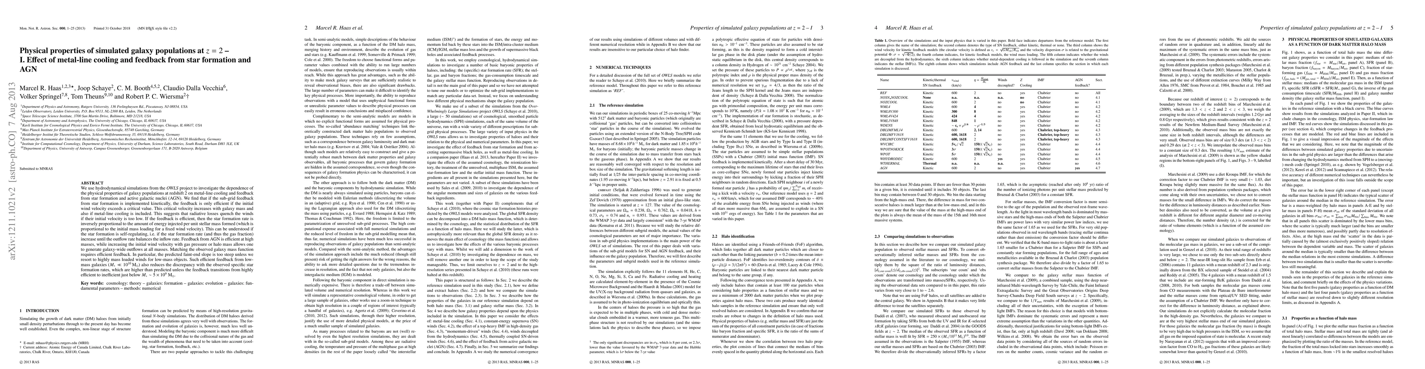 This paper investigates the physical properties of galaxy populations at redshift 2 using hydrodynamical simulations, focusing on the effects of metal-line cooling and feedback from star formation and AGN. Efficient feedback from star formation is found to be dependent on initial wind velocity exceeding a critical value, which increases with galaxy mass and is influenced by metal-line cooling.