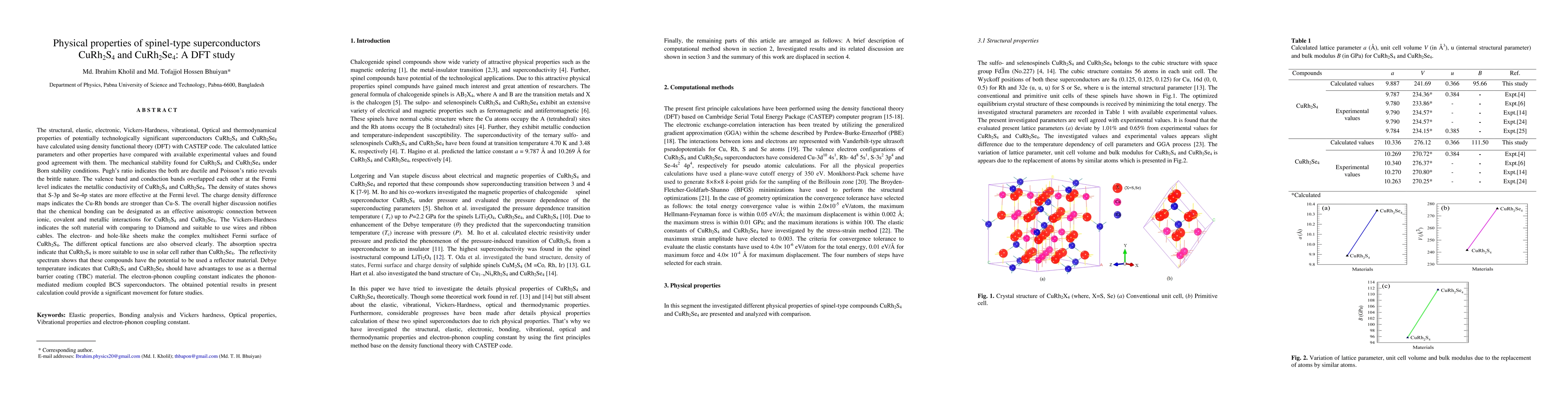 Researchers used DFT to study the physical properties of superconductors CuRh2S4 and CuRh2Se4, finding metallic conductivity, soft materials suitable for wires and cables, and potential applications in solar cells and thermal barrier coatings.